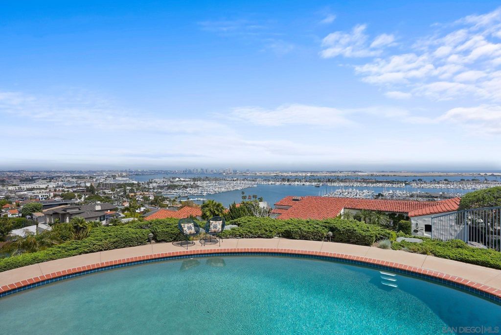 Views that will take your breath away! Situated high off an already very exclusive,"no-outlet" street, this property boasts the most mesmerizing, panoramic, to-die-for, and unobstructed view of the San Diego skyline, the Coronado Bridge, and beyond. The graciously laid out living space of over 2,900sqft. is built around a convenient split level floor plan, allowing the future owner to navigate the 4BR/3BA with ease, and without having to negotiate many stairs. The generous lot size of 12,117sqft. leaves ample room to add onto the existing structure, thus offering great potential to someone who wants to use this one-of-a-kind view lot to build their dream home. The pool and deck areas, accessible directly from both the family room and the guest suite, are prominently situated in the front yard area thus offering the rare opportunity to enjoy the magnificent skyline views directly from the pool with a surprising degree of privacy. Other noteworthy features of this dramatic property include a 3-car garage with lots of extra storage space, a workshop, and additional space in front of the garage to park up to three cars. With its combination of truly unrivaled views from most of the rooms, move-in ready and spacious living areas, and with the potential for customization, this property is sure to impress even the most discerning buyer. Don't miss out!