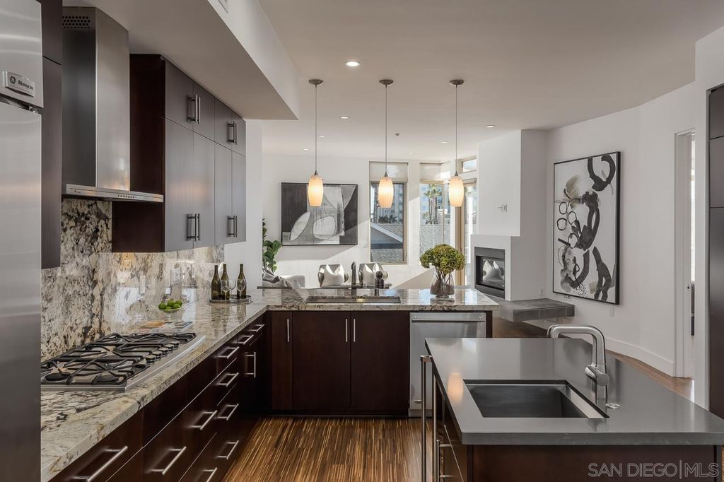 THis penthouse unit won't last long! Crystal Sands is a hidden gem nestled in the heart of Downtown Oceanside. This exclusive luxury complex boasts only 9 custom condos, all with the option to Short Term Rent while you are away, making it truly a unique find. Step into unit 512 at Crystal Sands and immerse yourself in the epitome of coastal luxury living. This unit lives like a single-level condo, and offers 2 private decks where you can soak in the coastal ambiance and embrace the ocean view. It has dramatic 9'+ ceilings, expansive tall windows, and 7 skylights. With light wood floors, smooth coat walls, 8' solid core doors, and stunning stone and ceramic tile accents, this unit has it all! The kitchen features top-of-the-line appliances, high-end finishes, and European-style cabinetry, a testament to refined craftsmanship and functionality. Every element of this unit has been carefully curated to create a sanctuary of refined living by the beach. And don't forget about the building amenities, you have underground parking, storage, a state-of-the-art gym, an elevator, security, and beautiful landscaping.