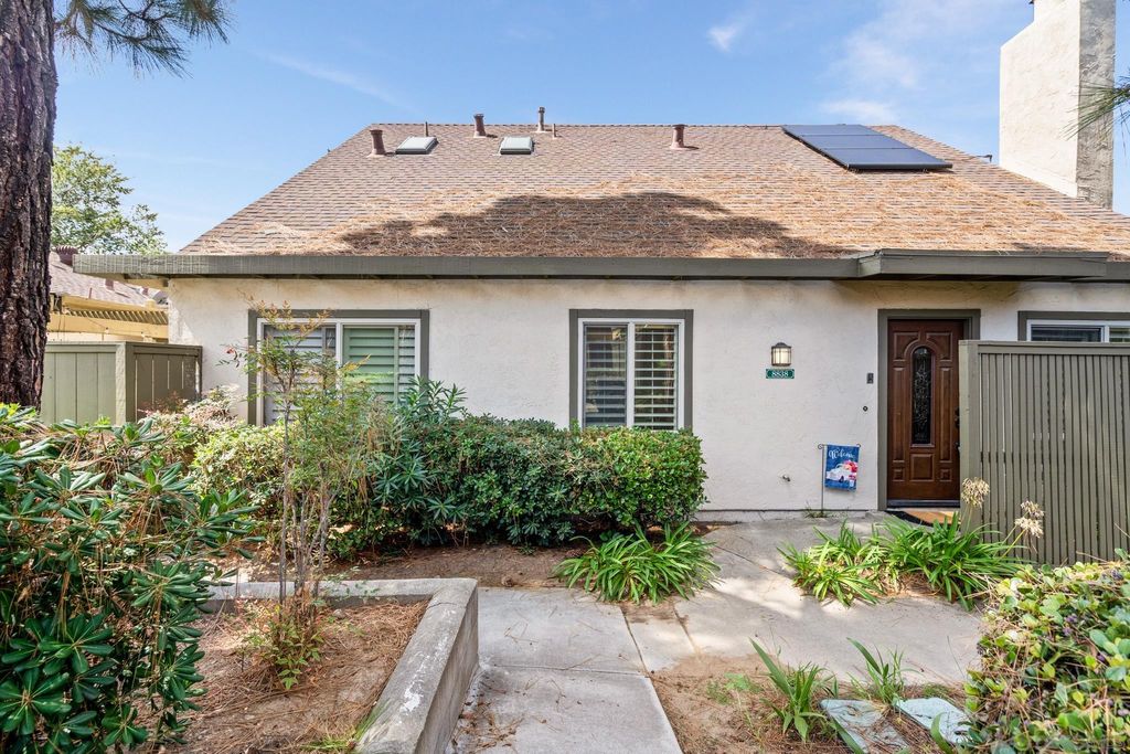 Step into this turnkey masterpiece, with designer-inspired touches throughout, this home is a true gem! The interior boasts hand-troweled wall & ceiling textures, raised paneled doors, & modern flooring. The gourmet kitchen is a standout feature, w/ top-of-the-line Thermador stainless steel appliances. Its lighting design includes recessed ceiling lighting, under-cabinet illumination, & cabinet lighting. Admire Tumbled Travertine backsplash, Granite countertops, soft-closing cabinets, pullout shelving, pantry, & Lazy Susan cabinetry. The kitchen opens to cozy living & dining areas with a custom vaulted ceiling & recessed lighting. Enjoy a Santa Barbara-style fireplace, in-wall speakers, Travertine tile hearth with glass doors. Venture upstairs via the craftsman stairs and discover a custom-built loft perfect for a family room and office flex space. A special feature of this home is a dressing area which maximizes every nook of this well thought-out home. The upstairs bathroom is a haven of luxury, boasting custom vaulted ceilings complete w/ natural lighting & double basin vanity. To ensure ample space for your belongings, there's additional easy access attic storage. Step outside, & you'll be delighted by the spacious fenced patio/yard, offering the perfect space for outdoor enjoyment. Conveniently attached is a 2-car carport complete with a generously sized storage closet. Solar has recently been installed to offer energy effeciency. Nestled in the wonderful community, Mesa Village, you'll enjoy access to 2 Junior Olympic-size pools & a multitude of other amenities.