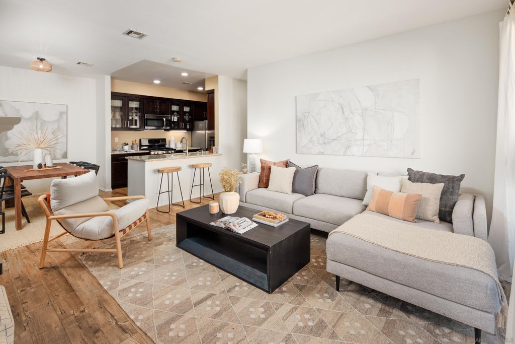 Welcome to this fully updated 2-bedroom, 2-bathroom home nestled near the vibrant Del Mar Highlands Town Center & One Paseo in the heart of Carmel Valley. This exquisite property blends contemporary design with coastal comfort, offering utmost privacy with its second story patio situated on the back side of the community. Upon entering, you'll be greeted by the open-concept living space adorned with newer finishes and sunlit interiors highlighted by natural light in each room. The kitchen features granite countertops, stainless steel appliances and a gas range. Two primary suites each with their own en-suite bathroom make this your perfect escape close to shopping, dining, luxury cinemas and much more.