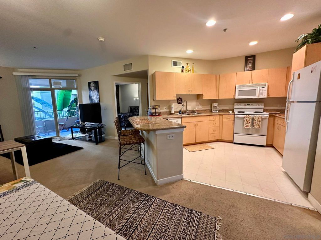 "Lower price indicative of need for updating." Great price on this cozy and private end unit in a favored one bedroom floorplan! Last 2 model match comps were $580K and $577K. This unit overlooks the garden piazza in a serene setting with plants and a fountain. Spacious bedroom leading to a larger sized covered balcony. The freshly painted balcony is accessible from the bedroom and the living room. The layout effortlessly connects the living room, dining area, and kitchen. The hallway leads to stacked washer/dryer and bathroom which includes a tub/shower combination. Needs some Love... New flooring and paint would spruce it right up! All original. Amenities within the complex include a state of the art 24 hour fitness center, spacious community room with full kitchen and living area. The pool and spa are currently under renovation. The area surrounding pool has been extended to include BBQ's and Firepits. There is a pool table and conference room as well. Situated close to India St and the Piazza Della Famiglia is just a stroll away. In close proximity to Embarcadero, Seaport Village, and SD airport approx. 2 miles away. This location offers the lifestyle for those seeking a city retreat for vacation rental or full time living.