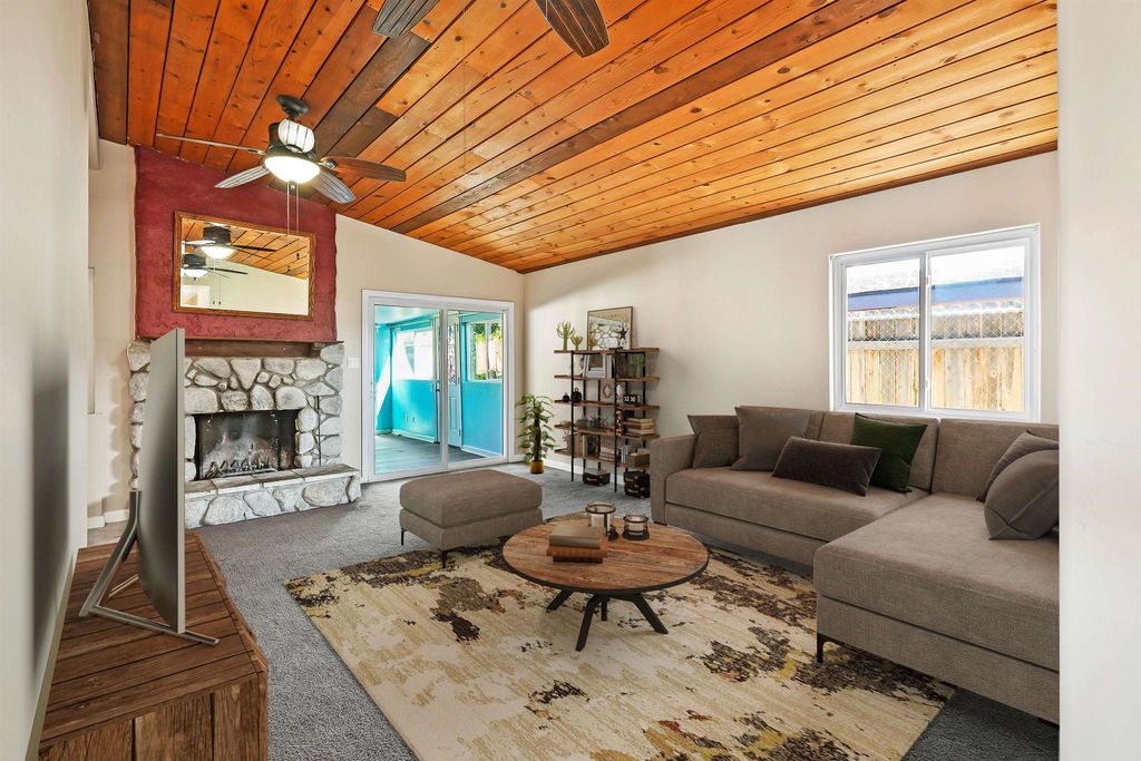 BOM at no fault of sellers. This delightful single-family home in Santee offers a harmonious blend of comfort and efficiency. Featuring a new roof installed in 2020, the property begins with a water-conserving front yard that enhances curb appeal while showcasing a commitment to sustainability. Zoned Residential and Light Industrial. Inside, a well-maintained kitchen combines modern convenience with style. The centerpiece of the living space is a charming stone fireplace, perfect for cozy gatherings on cooler evenings.