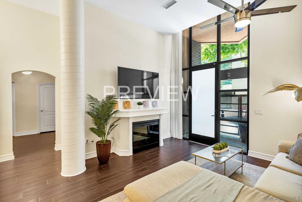 Welcome to your exclusive urban oasis! Nestled in the heart of trendy East Village, this turnkey ground-level condo features low HOAs, floor to ceiling windows, designer finishes, and unparalleled convenience. Pet owners will appreciate the ground-level accessibility, making walks with your four-legged companions a breeze. Step from your private patio into a bright and airy living space, boasting impressive 14' ceilings, custom crown molding, and plenty of room for entertaining. The fully remodeled kitchen features a true waterfalled breakfast bar and updated appliances, while your generous remodeled bath and in-unit laundry offer work-from-home convenience. The community features a well maintained jacuzzi and garden area and low HOAs. With an area walk score of 98, you'll love to leave your vehicle in your dedicated, oversized parking spot! See supplemental remarks for more!