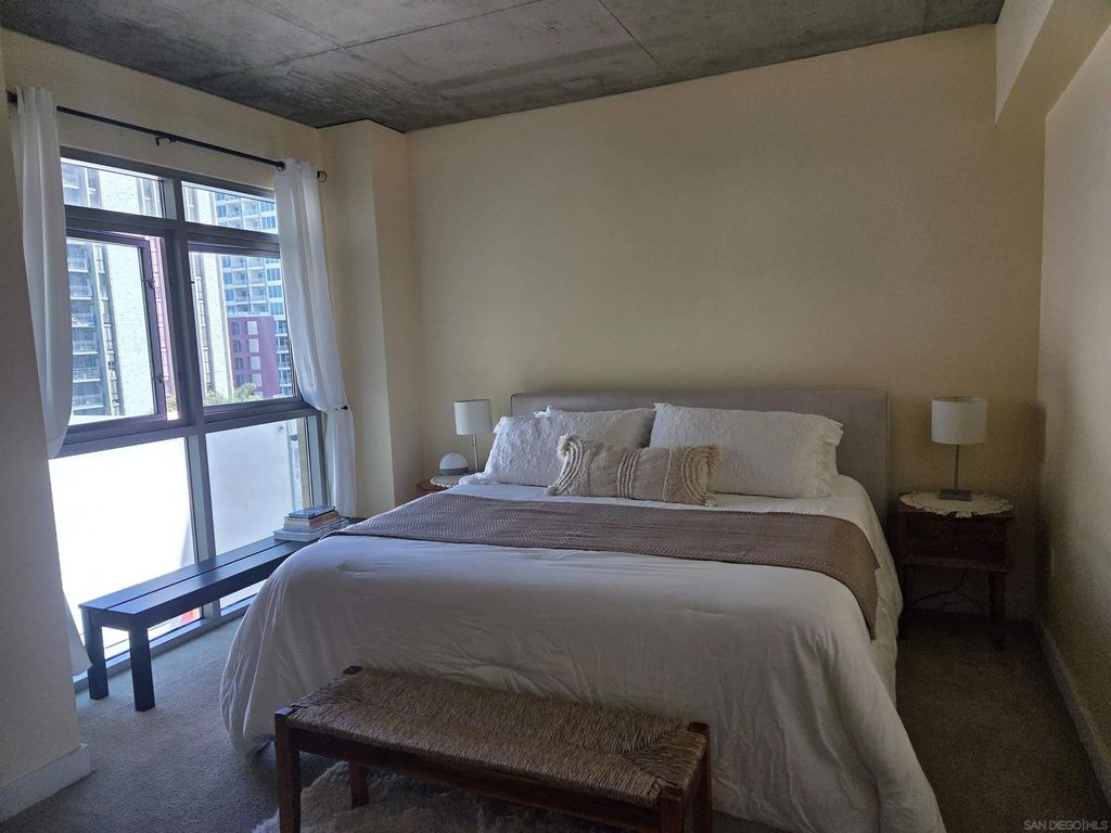 This beautiful, spacious and light-filled condo is located in the very walkable neighborhood of Cortez Hill, conveniently located on a hill in the northeast area of downtown with jacaranda lined streets, in the highly sought after Cortez Blu building! Cortez Hill is located within walking distance of Balboa Park, south of Banker's Hill and east of Little Italy. Enjoy the city views from your private balcony or through the floor to ceiling windows in every room. There are newer, beautiful luxury vinyl tile floors throughout the main areas of the condo with carpet in the large master bedroom and second bedroom. The soaring cement ceilings and expansive windows compliment the gourmet kitchen with newer appliances and a large pantry. The kitchen flows freely into the expansive and open living spaces. The master bedroom has a large walk-in closet, en suite bathroom with dual vanities, a luxurious soaking tub as well as a separate shower. The second bedroom is a nice size with large windows and there is a second full bathroom close by, as well as a full size washer and dryer. The concrete ceilings and floors also provide a very quiet space for you to enjoy. There is one dedicated parking space, plus, for residents of Cortez Hill, additional permitted street parking is available for a $15 annual fee! Cortez Hill is a compact downtown neighborhood and is home to family-friendly restaurants, hotels and condo buildings. including the landmark El Cortez, a 1927 grand former hotel. St Joseph Cathedral dates from 1875 and features Mission Revivial-style architecture. Dotted with benches and whimsical birdhouses, Tweet Street Park is popular for strolls, while the sprawling and beautiful Balboa Park with its numerous museums and other attractions lies just to the north.