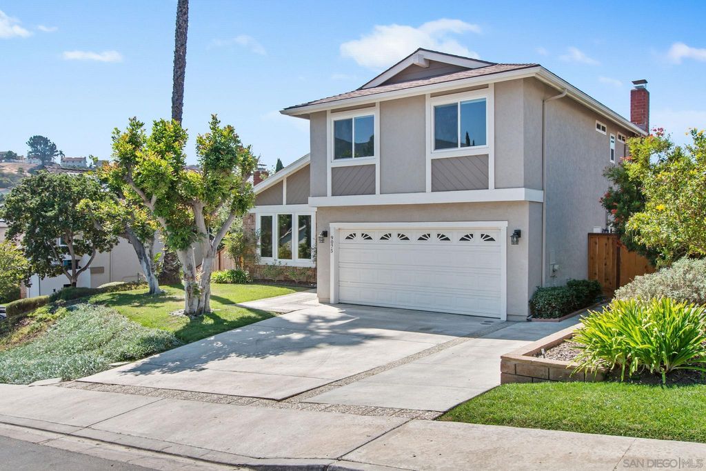 Don't miss this exceptional opportunity to own a view home in one of San Diego's most coveted neighborhoods. Perched on a serene cul-de-sac, this residence offers unparalleled privacy, refreshing breezes, and stunning vistas. Step inside to discover a beautifully updated interior featuring wood-like tile flooring, soaring vaulted ceilings, and expansive windows that fill the home with natural light. The ground floor showcases a spacious living room, a designated dining area, and a modern kitchen with sleek white cabinetry, stunning new quartz countertops, backsplash, and stainless steel appliances. The kitchen seamlessly flows into the family room, complete with a cozy fireplace, making it perfect for both everyday living and entertaining guests. A sunroom on this level adds extra charm, providing an ideal space for a playroom, a quiet reading nook, or a relaxing coffee corner. A convenient half bath completes the main floor. Upstairs you can find the bedrooms. The impressive primary suite features a bonus space ideal for a work space, nursery or sitting area, vanity, an ensuite bathroom with double sinks and sparkling white quartz countertops, and a large balcony with panoramic views, including sightings of hot air balloons from Del Mar. Additional bedrooms are spacious and share a well-appointed hall bath. The landscaped backyard is a private oasis with a lush grassy area, fruit trees, and a charming gazebo, making it perfect for outdoor gatherings.