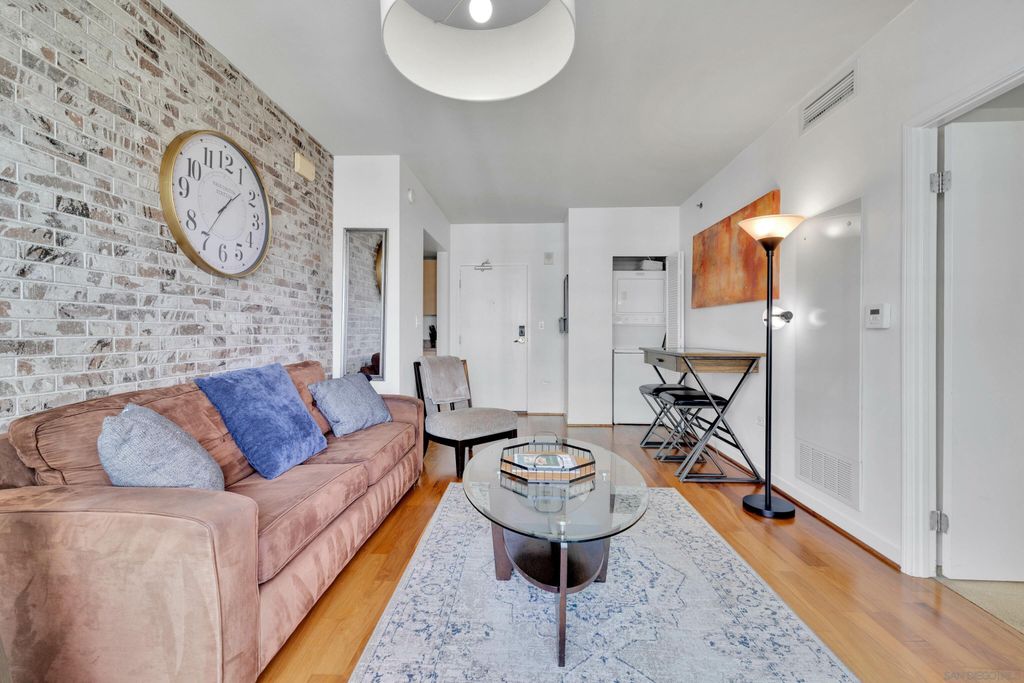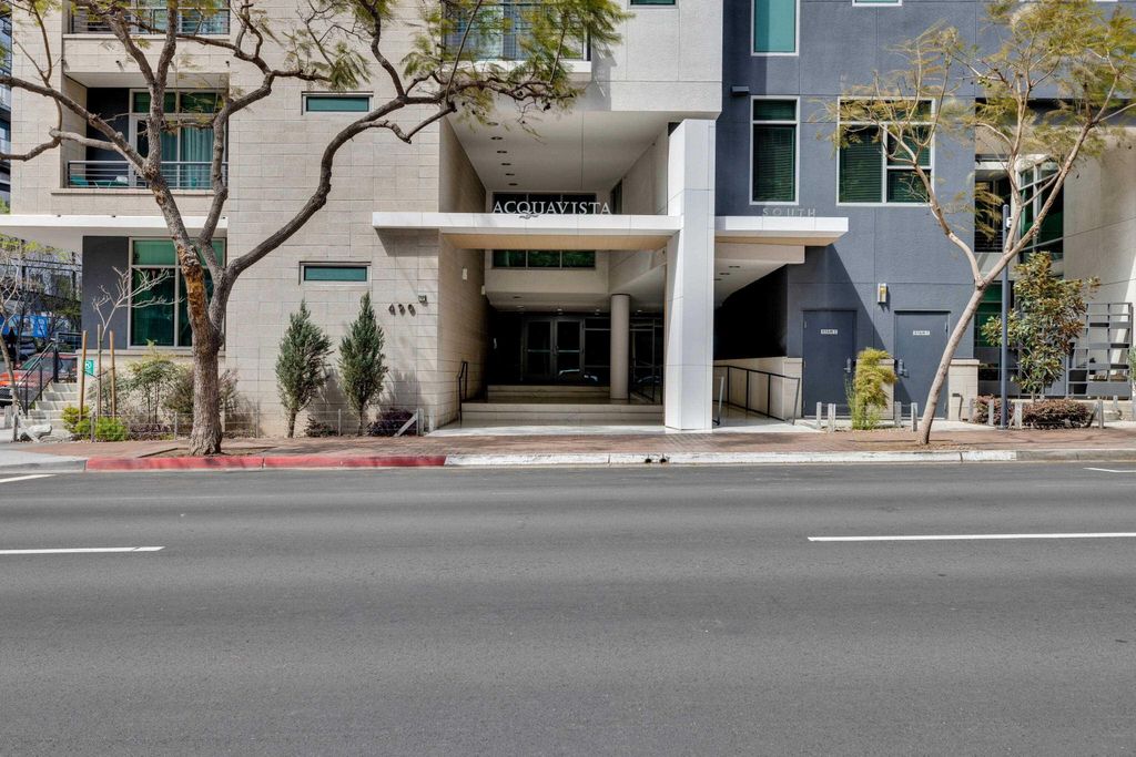 Great 12th floor, one bedroom, corner condo in Little Italy. North facing residence with an abundance of natural light as well as water and bay views! Patio overlooks the cityscape and 8th floor pool area. Acqua Vista is a full service amenity building with on site staff, valet parking, fitness center, 8th floor pool, spa and BBQ. Location is unbeatable with restaurants, shops, Little Italy farmers market, San Diego waterfront and more all within walking distance. Dont miss this opportunity!