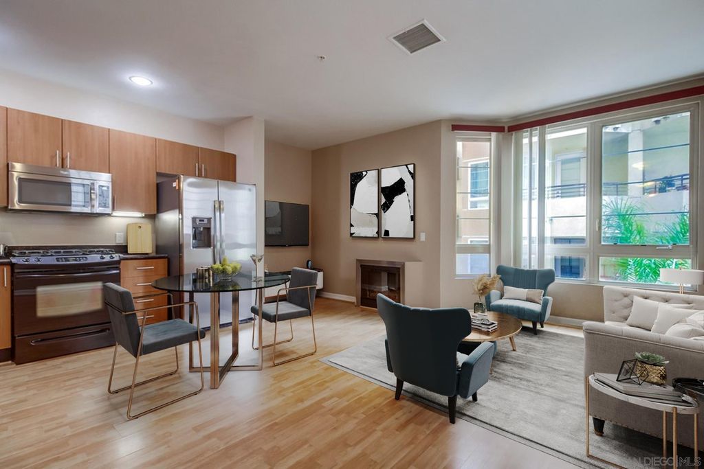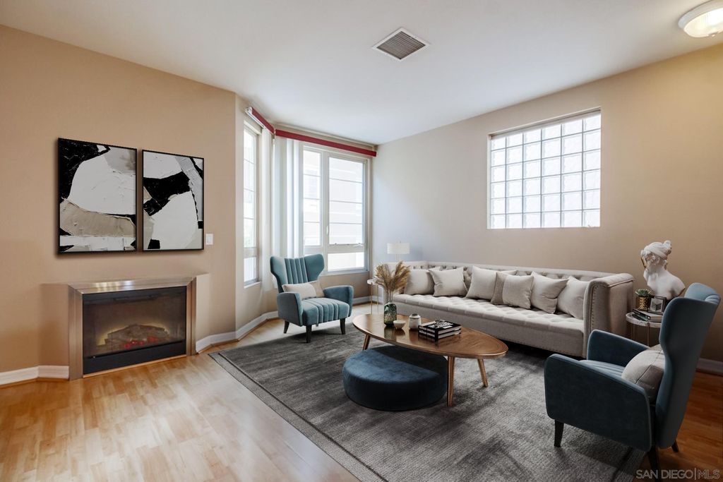 Step into this stylish and spacious 1-bedroom, 1-bath end-unit condominium in the heart of downtown San Diego's vibrant East Village. Located just moments from top restaurants, shopping, entertainment, and trending San Diego City College, this beautiful home puts you right in the center of it all. Inside, you'll love the open-concept layout featuring granite countertops, stainless steel appliances, a cozy fireplace, and sleek laminate hardwood floors. Additional highlights include in-unit laundry, central A/C, and assigned parking space for ultimate convenience. Union Square offers fully equipped fitness center, spa, sauna, lounge, bbq areas, EV charging and guest parking. This is a great entry level home or investment opportunity to own in one of San Diego's most dynamic areas. Motivated Seller. Union Square is conveniently located next to popular City College as well as close proximity to restaurants, shops, Petco Park and all that downtown San Diego has to offer. The community has a fitness center, clubhouse, spa, sauna, bbq areas, fountains, EV Charging, assigned parking space and guest parking.