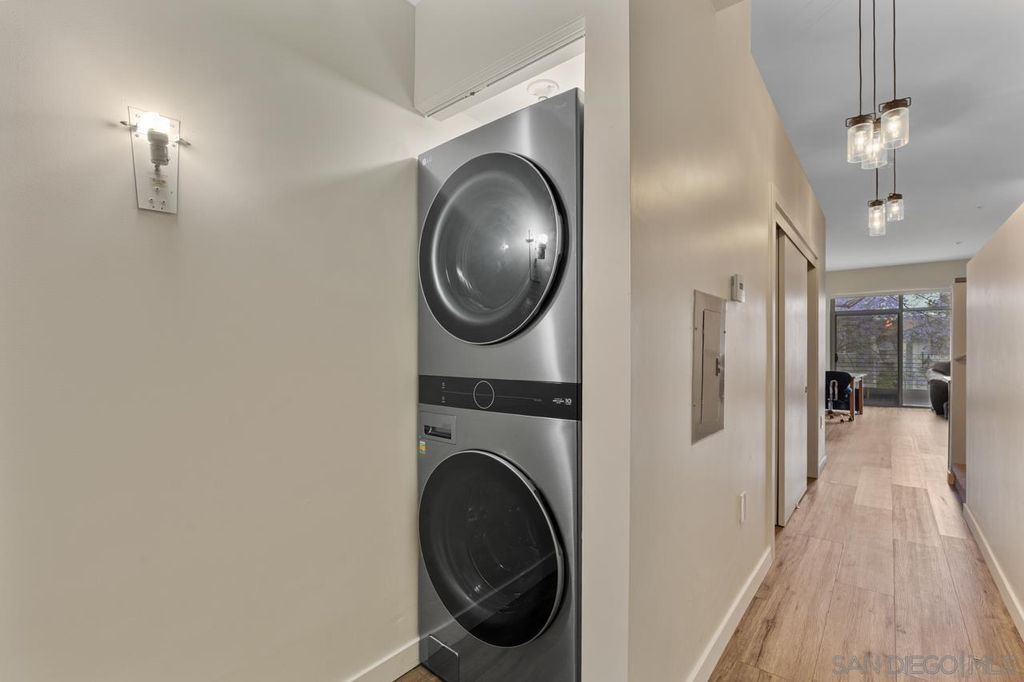 This chic and modern residence in the heart of Cortez Hill has been recently renovated. Just steps from a beloved neighborhood dog park, the home offers a rare blend of urban living and green space access at the highly desirable Aloft on Cortez Hill. The unit was completely gutted and thoughtfully upgraded with all-new paint, drywall, and luxury finishes. Durable vinyl plank flooring spans the main living space, while plush Berber carpet adds comfort to the loft area. The kitchen and bath feature upgraded cabinetry, far superior to the original builder-grade options. Appliance upgrades include a Samsung Wi-Fi-enabled oven with built-in air fryer and a high-efficiency LG ThinQ washer/dryer"”all in like-new condition, with the oven never having been used. Previously in need of major updates, this home has been transformed into a move-in-ready retreat with modern conveniences and style. Lightly lived in and meticulously maintained, this is a rare opportunity to own a turnkey home in one of Downtown San Diego's most charming neighborhoods. Meticulously maintained building at Aloft with on site front desk security from 10:30am to 10pm. Property is virtually staged