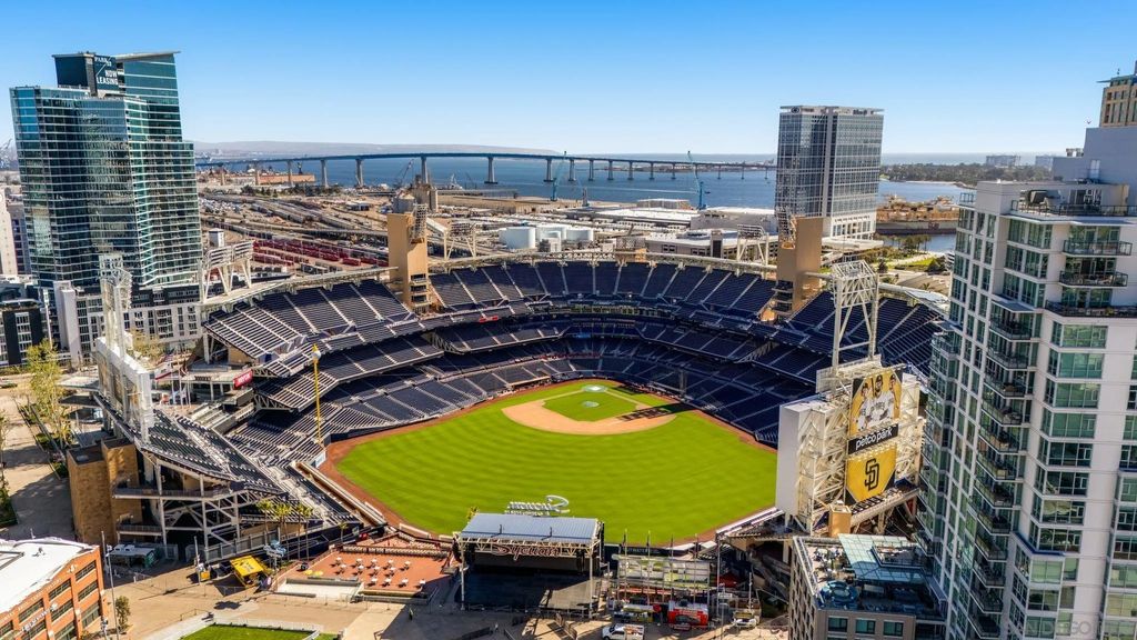 Dramatically positioned atop the cityscape, this exceptional penthouse offers an extraordinary vantage point directly overlooking home plate at Petco Park"”an iconic perspective that few can claim. Encompassing 3,110 square feet, this one-of-a-kind residence is the largest in the prestigious Parkloft community, where contemporary sophistication converges with the raw elegance of loft-inspired architecture. Floor-to-ceiling windows and a sweeping 60-foot balcony unveil commanding 180-degree views of the San Diego skyline, the Coronado Bridge, and the Pacific horizon"”each sunset more cinematic than the last. Inside, a grand 10-foot entry door opens to a voluminous interior defined by rich, dark-stained oak flooring and hand-applied Venetian plaster walls in warm terra cotta tones. The gourmet kitchen is both a design centerpiece and a culinary haven, featuring marble countertops, top-tier appliances, and a striking island ideal for gathering. A custom brick wall lends artistic character to the adjacent dining area, while the open-concept living space invites effortless entertaining against a backdrop of dramatic vistas. Ascend the sculptural spiral staircase"”crafted with a woven metal balustrade"”to the serene primary suite, complete with its own private entrance, balcony, sitting area, and a spa-inspired bath adorned with Italian terracotta tile, a soaking tub, luxuriously appointed glass shower and an expansive walk-in closet with European cabinetry. This rare and refined offering includes two ground-level, gated parking spaces"”an exceptional convenience in the vibrant heart of downtown. Ideally situated within the coveted Parkloft community, residents are mere steps from the electric energy of Petco Park, the celebrated dining and nightlife of the Gaslamp Quarter, and the coastal allure of the Marina District. With effortless access to San Diego International Airport and the Santa Fe Depot, the city"”and beyond"”is always within easy reach. Parkloft elevates urban living with an array of premier amenities designed to enrich daily life. From the attentive concierge and serene, Zen-inspired lobby to the fully equipped fitness center and lushly landscaped courtyard ideal for relaxed gatherings, every detail is curated for both comfort and connection. Here, luxury meets lifestyle in its most sophisticated form"”where modern design, urban convenience, and refined community living exist in seamless harmony.