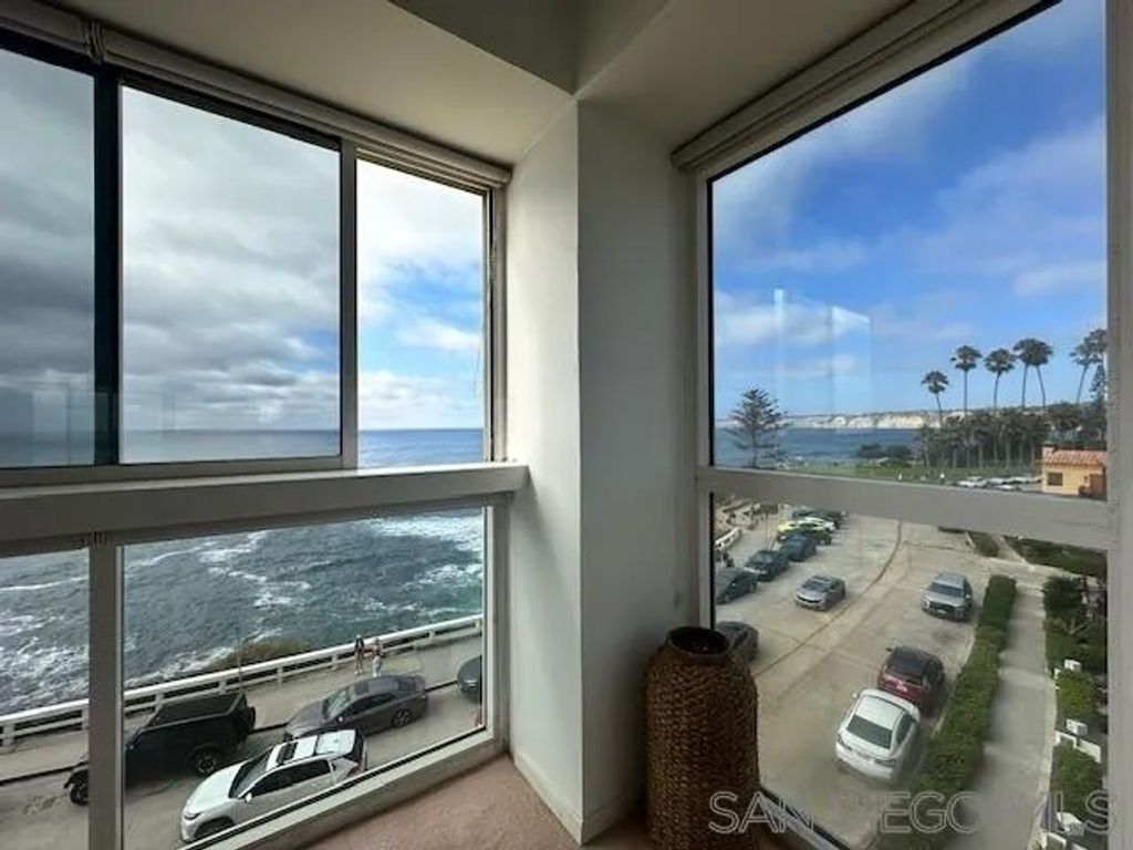 Fabulous Ocean corner Unit 6A available with Panoramic views of the ocean of La Jolla Cove & White water views. Sit down ocean views from the bedrooms. Newer laminate wood flooring. Kitchen and bathrooms are in original condition. (1) parking plus Storage Valet Parking is available. Doorman at entry lobby.