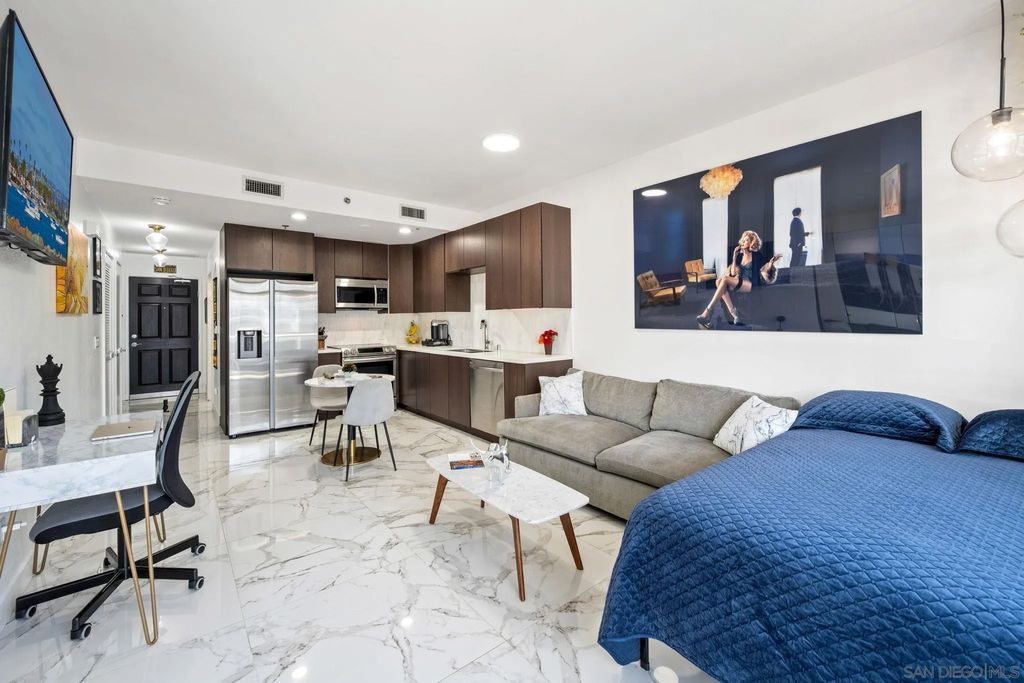 Newly renovated and upgraded East Village San Diego Studio next to Petco Park. Whether you're looking for your first home, a stylish vacation getaway, or a smart investment property, this Diamond Terrace Home has it all. The fully remodeled interior features large porcelain tile flooring throughout, modern light fixtures, and a beautifully updated bathroom with dual sinks and a step-in tile shower. The open-concept kitchen has been thoughtfully upgraded with new stainless steel appliances, sleek cabinetry, quartz countertops, and a contemporary tile backsplash. The unit comes with additional storage and 1 parking space. Located in the heart of East Village, Diamond Terrace places you just steps from San Diego's iconic Petco Park. Residents enjoy stadium views from the building's 14th-floor rooftop deck "” the perfect spot for entertaining or socializing with neighbors. Diamond Terrace also offers a variety of resident amenities, including a rooftop BBQ area, a stylish community room, and a fully equipped fitness center. With its prime location, you're only moments from East Village's trendiest restaurants, bars, boutique shops, and entertainment "” offering an unbeatable urban lifestyle in one of Downtown San Diego's most dynamic neighborhoods.