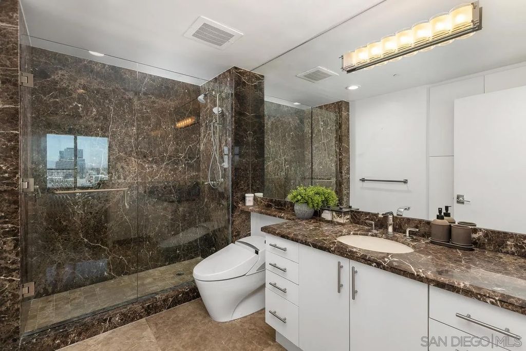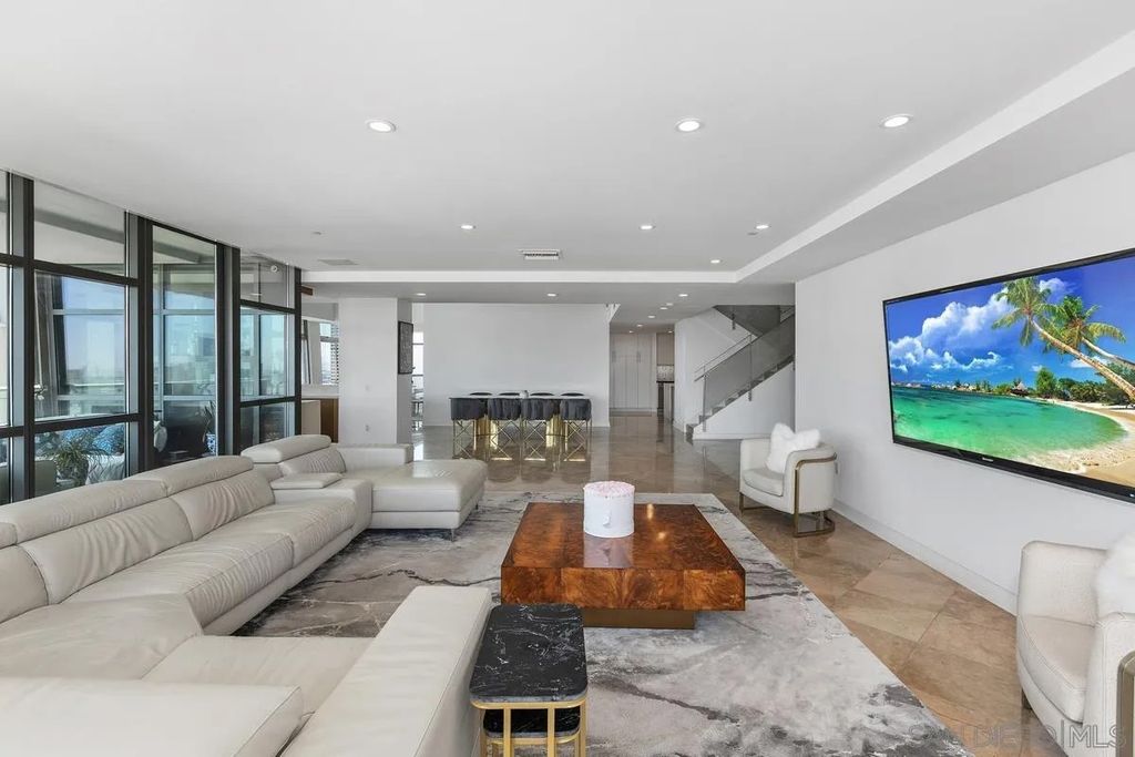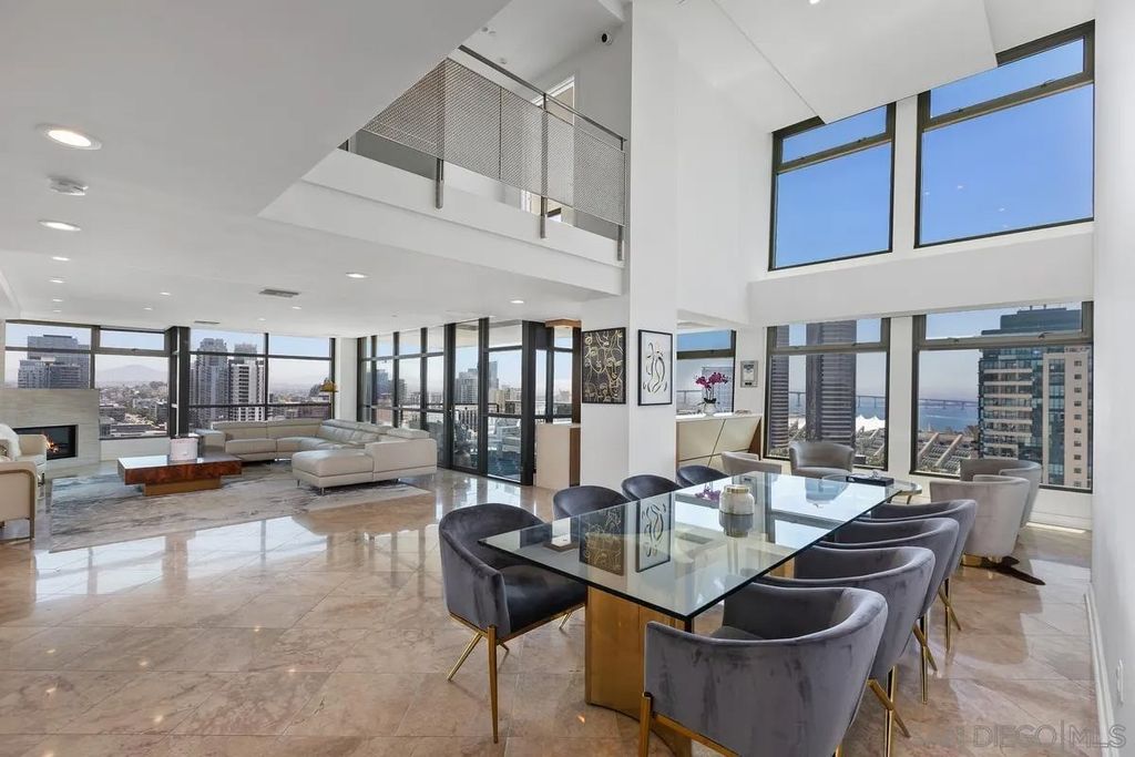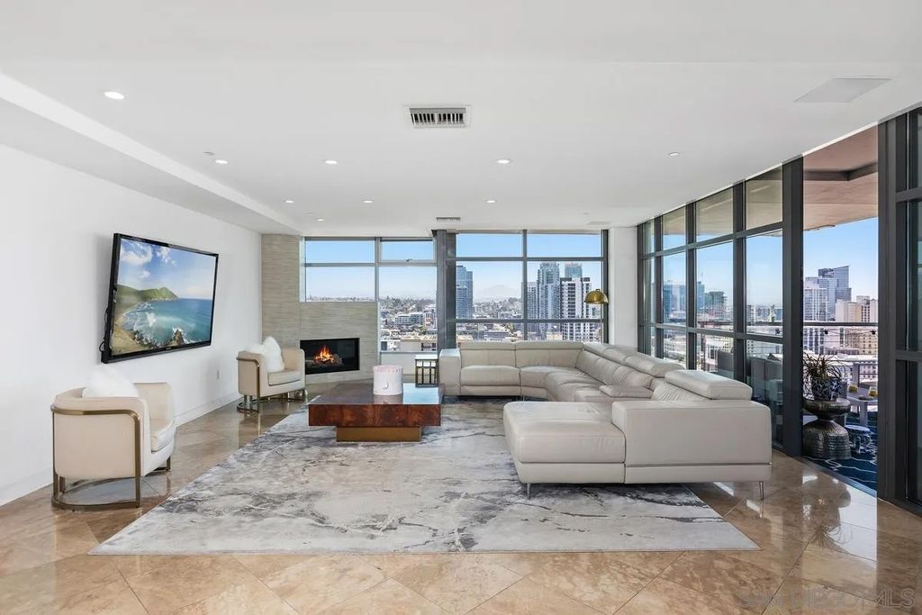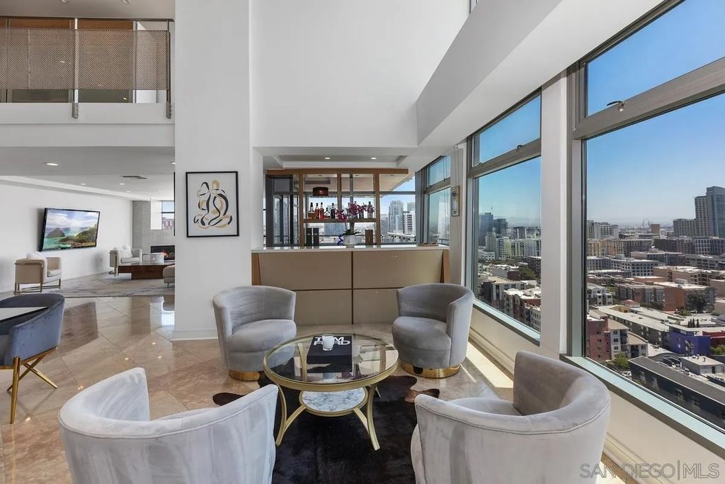 THIS IS IT! Experience the ultimate in upscale urban living in this breathtaking two-level penthouse perched high above San Diego's exclusive Marina District this is one of the largest units in all of San Diego boasting over 4,500 square ft of space with no waste. Located in the prestigious Renaissance building, this one-of-one residence showcases dramatic city, bay, and coastline views from nearly every room, offering a lifestyle of sophistication, privacy, and comfort. Meticulously designed to offer both grandeur and functionality. From custom materials like the limestone and marble floors, to both electronic and physical bidets, as well as smart home switches in every room. Secondary bedroom with shower, jetted spa tub, and walk in closet. Additional en-suite guest room with fireplace is larger than most penthouse primary bedrooms. Chef's Dream Kitchen, Designed for culinary excellence, the kitchen boasts a professional Wolf range, SubZero Fridge, built-in warming drawer, sleek Wolf microwave drawer, and elegant waterfall-edge stone island. Building boasts 24/7 Security & front desk staff, heated outdoor pool, spa, BBQ area, and well-equipped fitness center. Unit comes with large private storage and Two Side-by-Side parking spaces on lvl 1. Walking distance to the Gaslamp Quarter, Little Italy, Petco Park, the San Diego Convention Center, Seaport Village, and the Waterfront Embarcadero. Enjoy world-class dining, shopping, arts, and entertainment right outside your door. With quick access to major freeways and the airport, it's as convenient as it is luxurious.