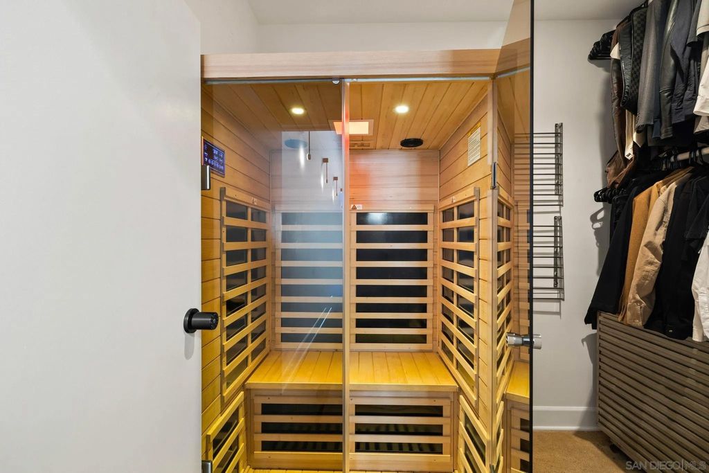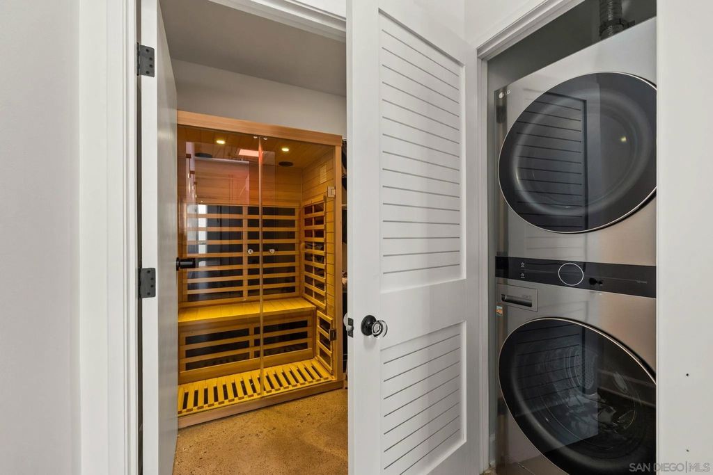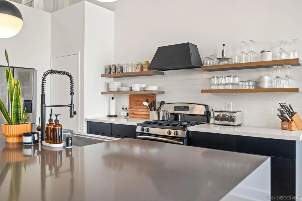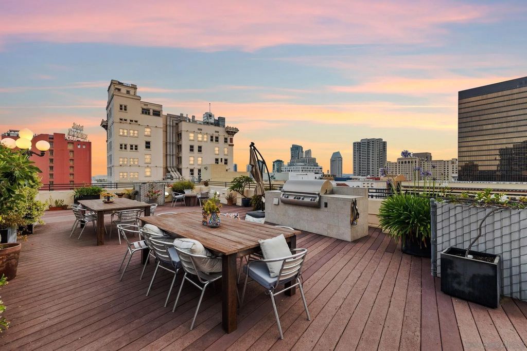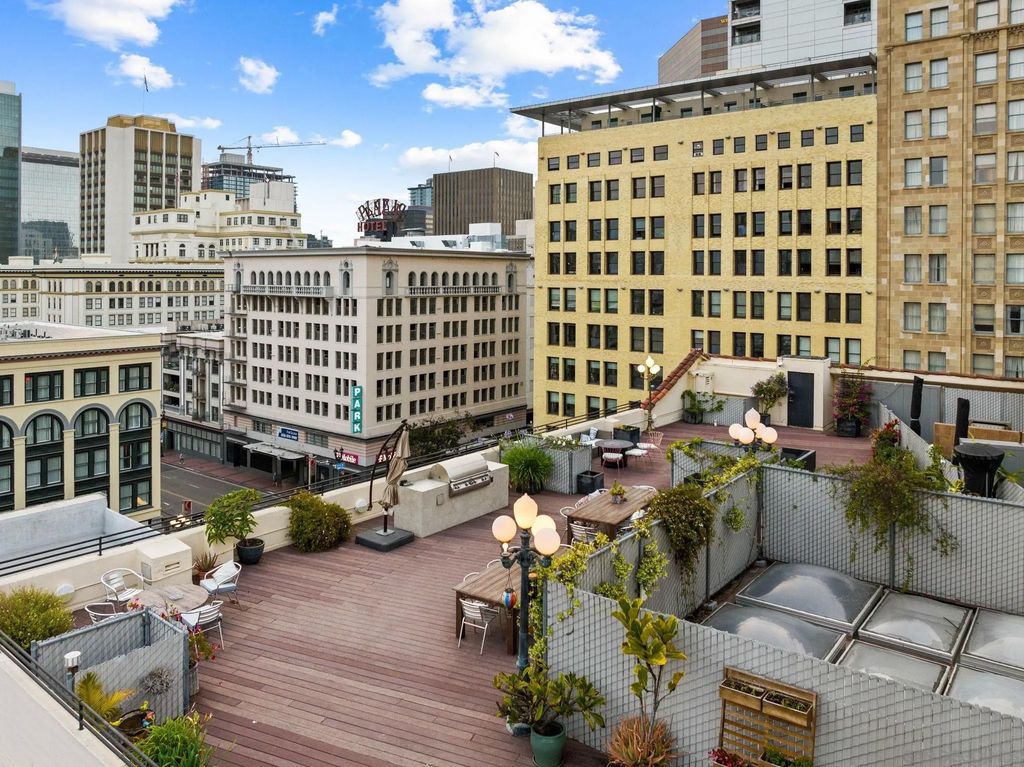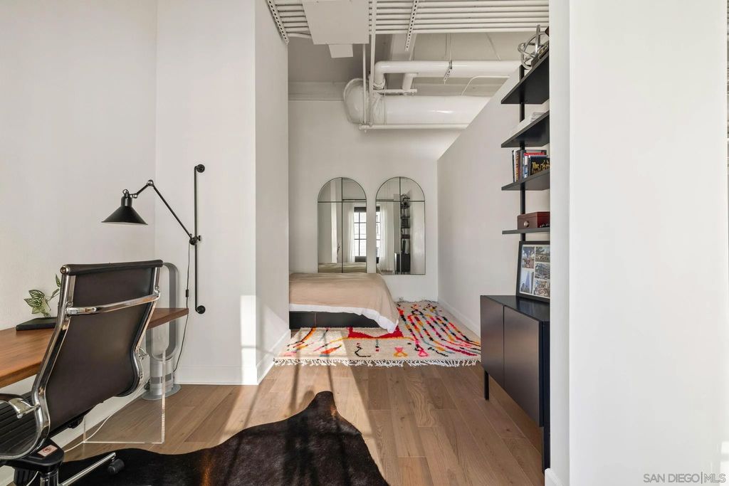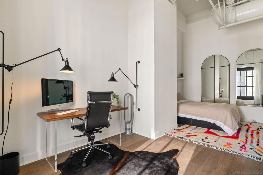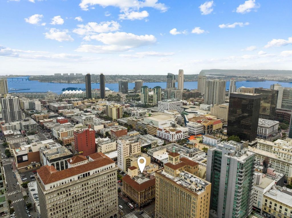 A rare offering in the architecturally renowned Samuel Fox Lofts. This turnkey, fully furnished, 1,201 SF residence blends historic architecture with modern, high-end design ready for immediate move in or your next luxury rental investment. With soaring 15-foot ceilings, expansive windows, and two skylights, natural light floods this top-floor unit with downtown city views. Meticulously remodeled with custom upgrades, the chef's kitchen features an expansive waterfall island, pantry with appliance storage, open shelving, wine fridge, and brand-new Fisher & Paykel appliances. A thoughtfully designed elevated alcove creates defined zones for sleeping and working, a unique feature for true loft living. The spa-like bathroom offers a dual vanity, luxury shower with dual showerheads, private water closet, and personal sauna down the hall. Polished concrete floors, curated lighting, and modern decor throughout the home creates an exceptional level of comfort for a loft layout. Located in the historically designated 1920s building by William Templeton Johnson, residents can enjoy panoramic skyline views on the rooftop deck featuring community garden, fire pit, and grilling station. Other amenities include 2 assigned garage parking spots, storage unit, high speed Google Fiber internet, and full-size brand-new washer/dryer in unit. Enjoy city living at its finest in this historic, pedestrian-friendly neighborhood overflowing with diverse restaurants, shopping, nightlife, and entertainment at Petco Park!
