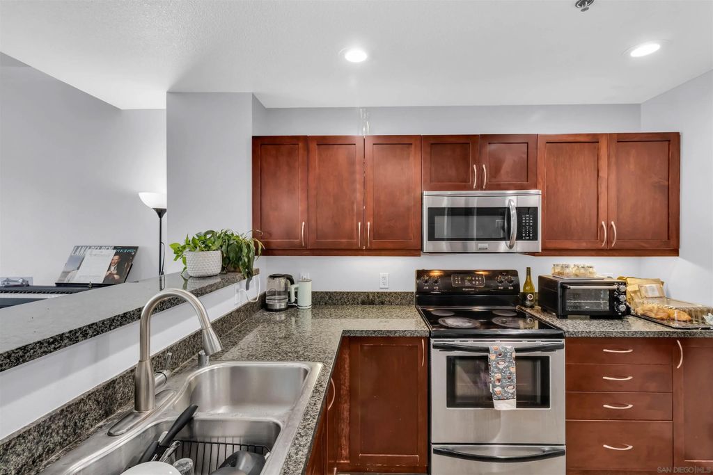 Welcome to this beautifully appointed residence in the heart of downtown San Diego's East Village. This bright and modern condo offers a perfect blend of comfort and urban sophistication. Step inside to find an open-concept living space with large windows that fill the home with natural light and showcase breathtaking city views. The contemporary kitchen is equipped with granite countertops, stainless steel appliances, and rich wood cabinetry, making it ideal for both cooking and entertaining. The spacious living area flows seamlessly to a private balcony"”perfect for enjoying morning coffee or evening sunsets while overlooking the vibrant city skyline. The bedroom retreat features ample closet space, while the bathroom is tastefully designed with granite counters and modern finishes. This secure, amenity-rich building offers everything you need for a dynamic downtown lifestyle, including a rooftop deck with BBQs and lounge areas, a fitness center, and inviting common spaces. Located steps away from Petco Park, top-rated dining, nightlife, and shopping, this home is an unmatched opportunity to live in one of San Diego's most desirable urban neighborhoods. Don't miss your chance to own a piece of downtown luxury living!