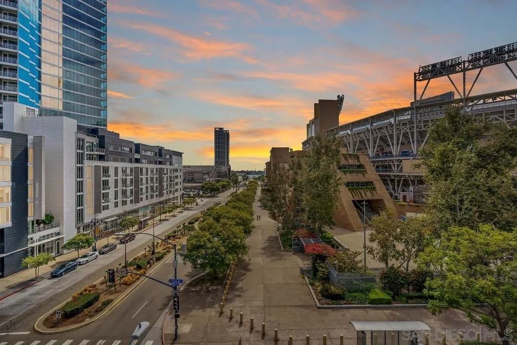 Welcome to Park Terrace in the vibrant Ballpark District of Downtown San Diego. This thoughtfully designed studio features an efficient layout, floor-to-ceiling windows, and a private balcony with bay views. Recent updates include fresh paint, new window treatments, sleek hard-surface flooring, and stainless steel appliances with in-unit washer and dryer. Community amenities include expansive outdoor areas with BBQs, a fitness center, and a large clubhouse. Close to Petco Park, Seaport Village, the Rady Shell, Gaslamp Quarter, and the San Diego Bay. Welcome to Park Terrace, a premier residence located in the vibrant Ballpark District of Downtown San Diego. Petco Park is just across the street, and you are only minutes from Seaport Village, East Village, the Rady Shell, the Gaslamp Quarter, and the San Diego Bay. This thoughtfully designed studio condominium features an efficient layout that maximizes both space and functionality. The open floor plan is filled with natural light from floor-to-ceiling windows and includes a private balcony with bay views. Recent upgrades include fresh interior paint, new window treatments, sleek hard-surface flooring, and a modern kitchen with stainless steel appliances, microwave, oven, and dishwasher, plus the convenience of an in-unit washer and dryer. Residents of Park Terrace enjoy expansive outdoor common areas with BBQs, a fully equipped fitness center, and a spacious community clubhouse. Whether you are seeking a full-time urban residence or a sophisticated pied-Ã -terre in Downtown San Diego, this home combines modern comfort with premier access to the city's most exciting attractions.