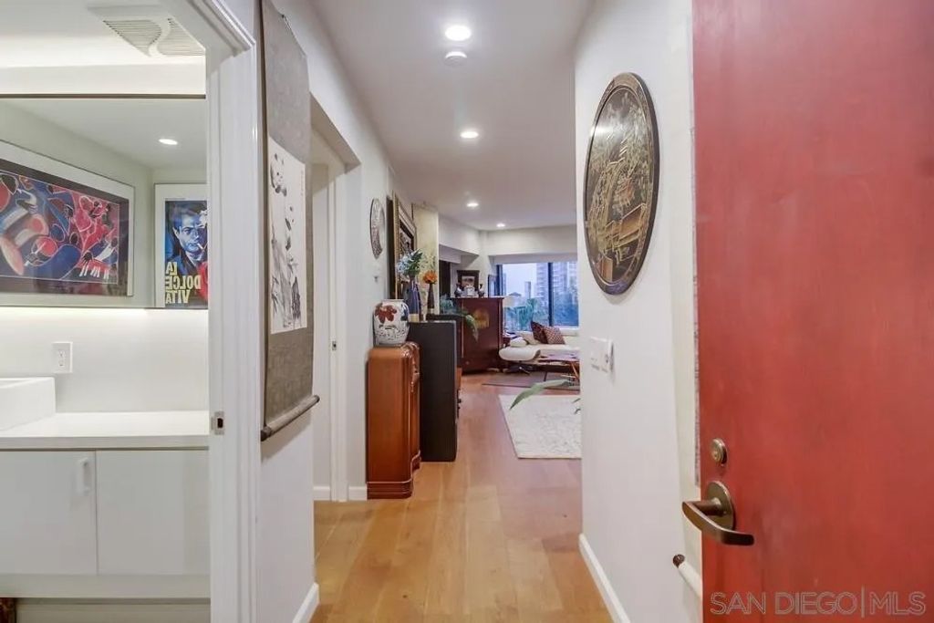 Luxury Living with spectacular San Diego Bay and city views at the iconic Harbor Club! This unique condo was tastefully remodeled and customized with no expense is spared. Walls of windows surround this fabulous home, all equipped with motorized roller shades for simple transition throughout your day. Custom built-in wine cellar in the open living room. Assigned corner parking in the garage with private Chargepoint EV charging station recently installed for $20K+. Only two units on this floor for ultimate privacy; a rare find in any major full service building. On the same floor for much desired convenience, there is a gorgeous lap pool, hot tub, extensive modern fitness center, beautiful community room with kitchen for entertaining, outdoor dining spaces with heaters, and a fire pit surrounded by cozy seating. These resort like amenities are located on the sixth floor up from the busy streets, creating an oasis away from the hustle and bustle of the city. The Harbor Club is located in the heart of downtown San Diego near the Gaslamp Quarter, restaurants galore, the Convention Center, near Petco Park, Seaport Village, minutes to Balboa Park and easy access to the airport.