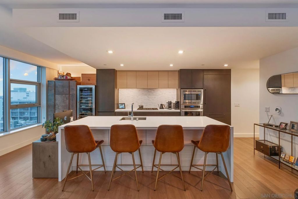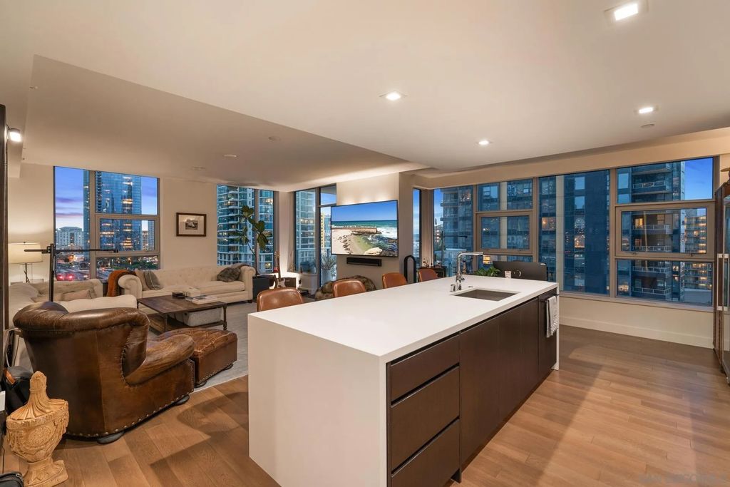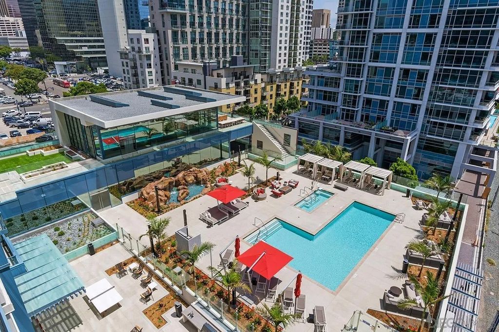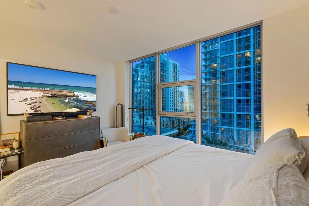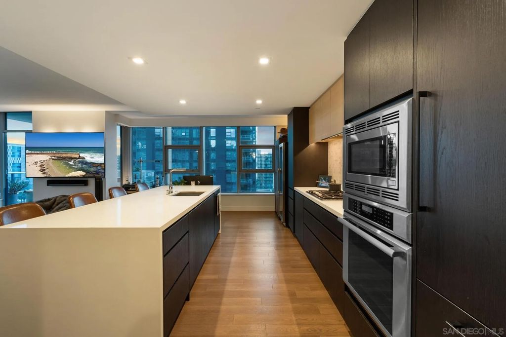This stunning southwest corner unit in the highly sought-after Savina by Bosa, offers sweeping bay views and an elevated lifestyle just steps from the heart of Little Italy. With 2 bedrooms and 2 bathrooms, this beautifully appointed home features rich wood flooring throughout, a spacious walk-in closet in the primary suite, and a sleek tub/shower combo in the guest bath. The chef-inspired kitchen is outfitted with top-of-the-line Thermador appliances, quartz countertops, Grohe fixtures, a gas stove, and an LG washer and dryer. Perfectly located just two blocks from the waterfront and only minutes to San Diego International Airport, Savina is ideal for those who crave convenience without compromising luxury. Experience the vibrant Little Italy lifestyle"”morning espresso runs, al fresco dining, boutique shopping, and one of the nation's top-rated farmers markets every Saturday, all right outside your door. Enjoy access to resort-style amenities including a 24-hour lobby attendant, pool with cabanas, state-of-the-art fitness center, yoga terrace, sauna, steam room, pet retreat, and more. Great 1031 option as property currently has tenant in place. Inquire for more information.