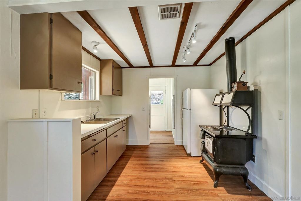 Cute cabin home with lots of charm in a beautiful, quiet neighborhood. New roof. Freshly painted interior with new flooring in all rooms. Private backyard with fruit trees. Great-sized covered front porch. 1.8 miles to downtown Julian. 1.5 miles to school. 10 miles to Lake Cuyamaca. View the Milky Way in this Dark Sky community. 2 miles to the local park. Pictures will be posted on 9/11