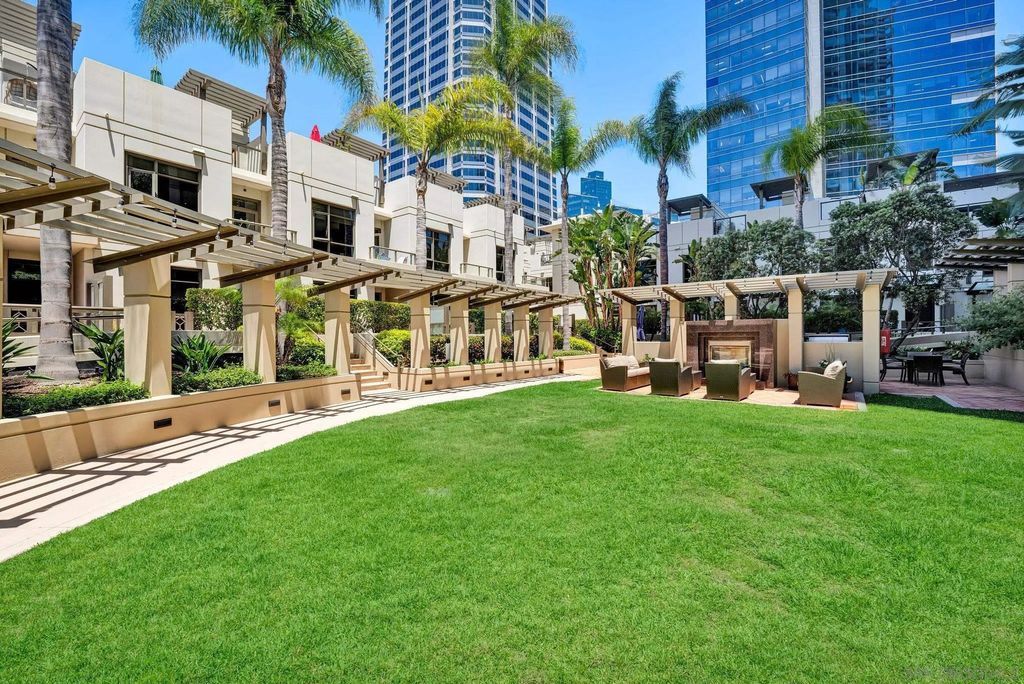 Tucked within the iconic Electra tower, this rare townhome-style condo blends high-rise luxury with the feel of a private garden retreat. Thoughtfully designed, the home features sleek modern finishes, an inviting walk-out balcony, and a rare private rooftop terrace - perfect for morning coffee, sunset lounging, or entertaining! Set amid lushly landscaped greenery, this residence sits on the same level as Electra's full suite of resort-style amenities. From the sparkling pool and hot tub to the sauna, steam room, BBQ area, and state-of-the-art fitness center, everything is just steps from your door - effortless living, elevated. Perfectly positioned close to San Diego's most beloved neighborhoods"”including Little Italy, Seaport Village, and the vibrant Gaslamp Quarter"”this home offers timeless elegance in the heart of the city. Perfectly positioned close to the best of Downtown"”from Little Italy's culinary scene to the waterfront charm of Seaport Village and the energy of the Gaslamp Quarter"”this home offers timeless elegance in the heart of the city!