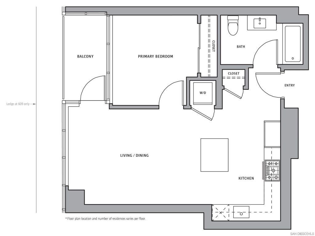 Welcome to Andia by Bosa Development. Residence 1909 features a southern exposure boasting integrated Bosch kitchen appliances with Zephyr hood, kitchen island with waterfall edge, polished chrome Kohler fixtures, Caesarstone quartz countertops with polished tile backsplash, front-loading full-size washer and dryer and spacious balcony with impressive city views. Now selling and already under construction with an anticipated completion date of fall 2027, Andia is the first new Downtown San Diego condominium high-rise in nearly 8 years. Featuring resort-like amenities and sophisticated interior design, the residences at Andia offer a seamless blend of style and comfort with the city as your backdrop. Andia by Bosa Development brings new heights to Downtown San Diego. Featuring modern design and resort-styled amenities, Andia soars 40 stories above the center of the city, showcasing 399 thoughtfully appointed 1- to 3-bedroom residences ranging in size from ~620 to ~1,729 square feet with two contemporary finish palettes. This is not an offer to sell but intended for information only. The developer reserves the right to make modification in materials, specifications, plans, pricing, designs, scheduling and delivery without prior notice. Renderings, photography, illustrations and other information described herein are representative only and are not intended to reflect any specific feature or view when built. No representation and warranties are made with regard to the accuracy, completeness or suitability of the information published herein.