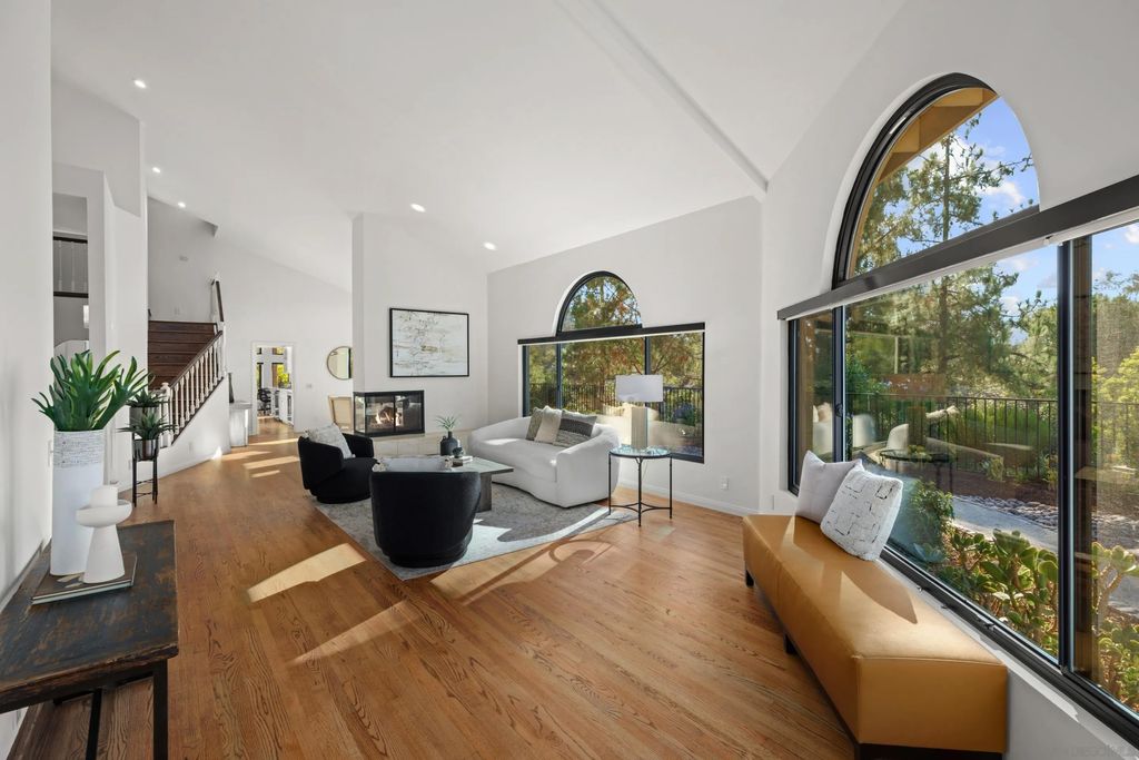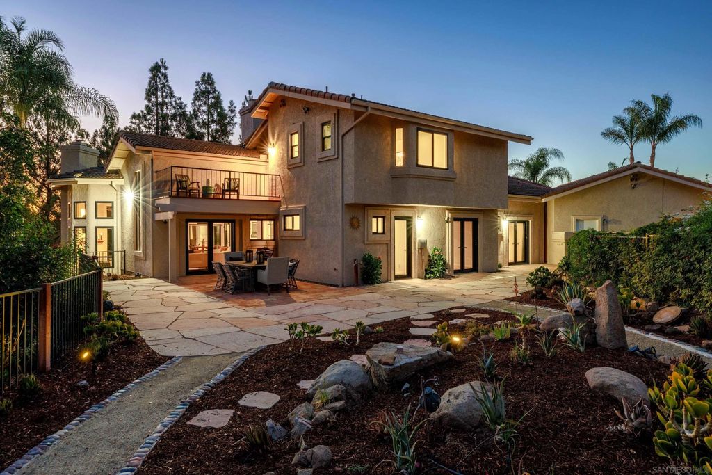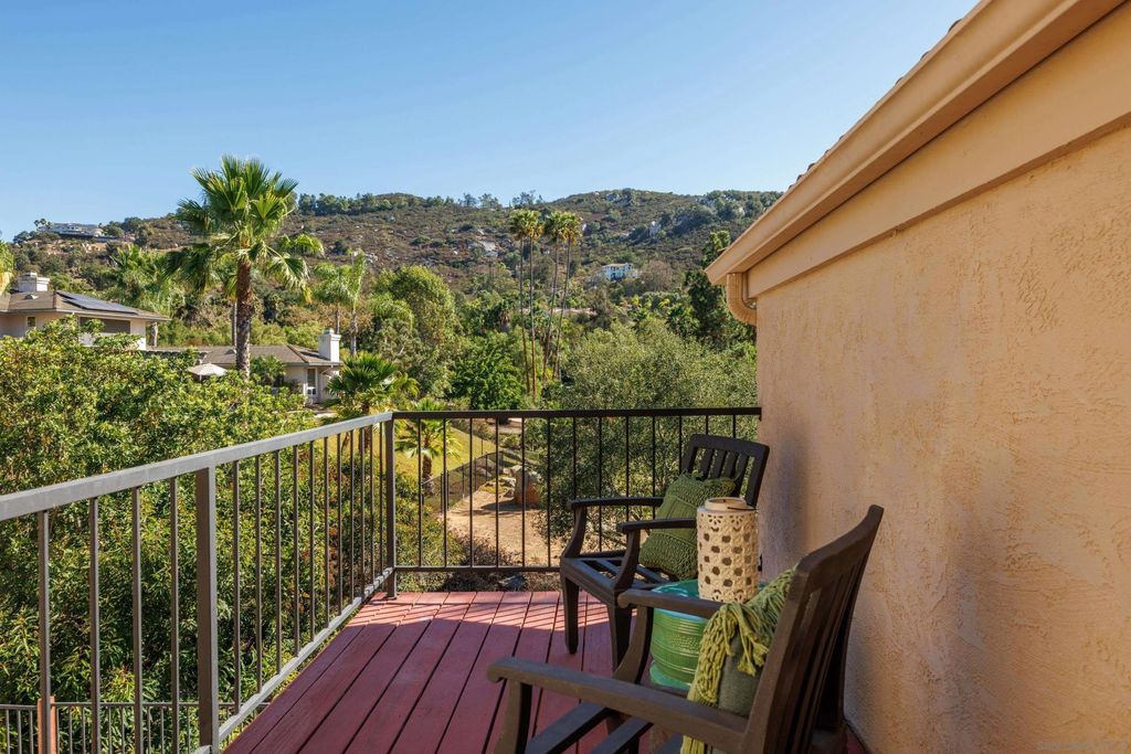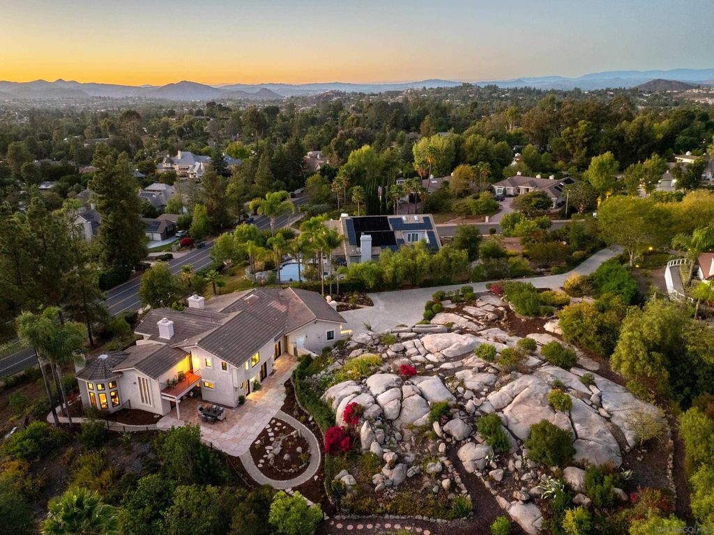 Tucked away in the exclusive enclave of Green Valley Knolls, this refined estate offers an elevated lifestyle where luxury meets nature on 1.17 serene acres. Spanning 3,699 sq ft, this custom built home is a private sanctuary with expansive mountain and hillside views that unfold with every sunset. A sweeping stone patio, energy-efficient new doors and windows throughout the home, and a completed property pro landscape design invite peaceful evenings under glowing skies. Step inside to discover airy, sunlit spaces with rich hardwood and tile floors, high ceilings, and a seamless indoor outdoor flow. French doors and new windows frame tranquil vistas, while the sophisticated, reimagined kitchen (featuring a high end oversized quartz island, new induction stove top, and custom details) anchors the heart of the home. The primary suite offers a retreat of its own, complete with a fireplace, dual walk-in closets, custom built-ins, and a private deck, ideal for morning coffee or evening stargazing. Four complete bathroom remodels showcase quartz counters, new vanities, upgraded lighting, and beautifully tiled showers, blending luxury with timeless design. Throughout the home, modern enhancements such as a whole house plumbing system with water safety controls, solar shades, and an upgraded irrigation system provide peace of mind and everyday ease. With no HOA, no Mello-Roos, and located within the top tier Poway Unified School District, this estate delivers an uncompromised blend of privacy, luxury, and convenience in one of Poway's most sought-after neighborhoods.