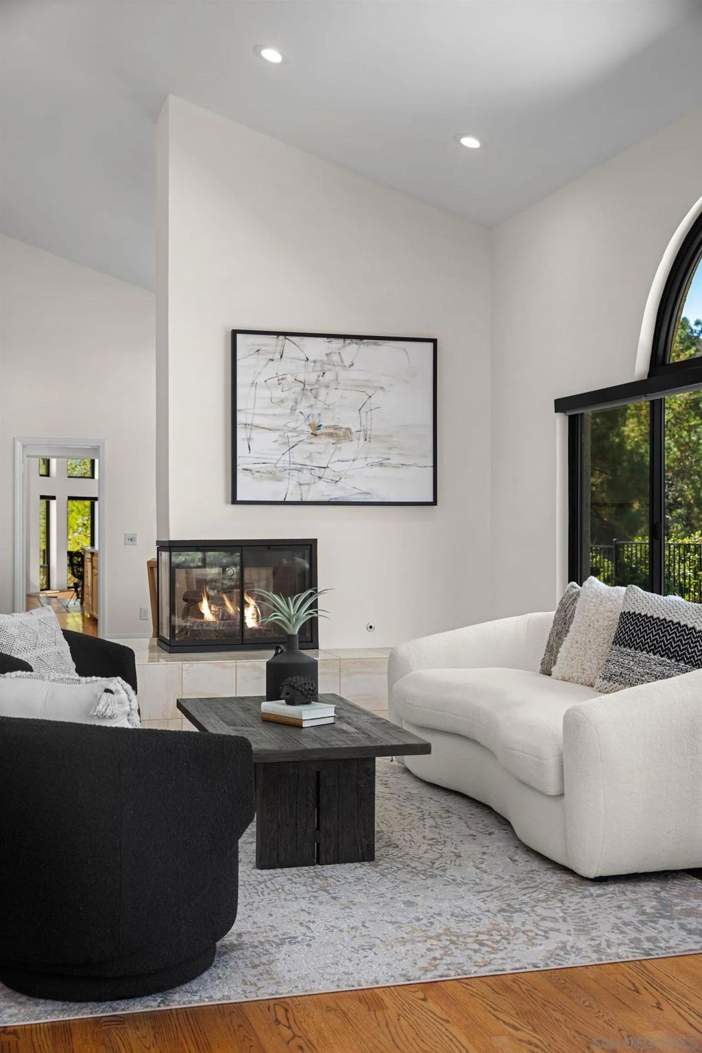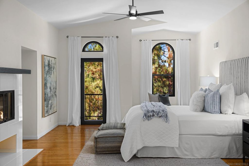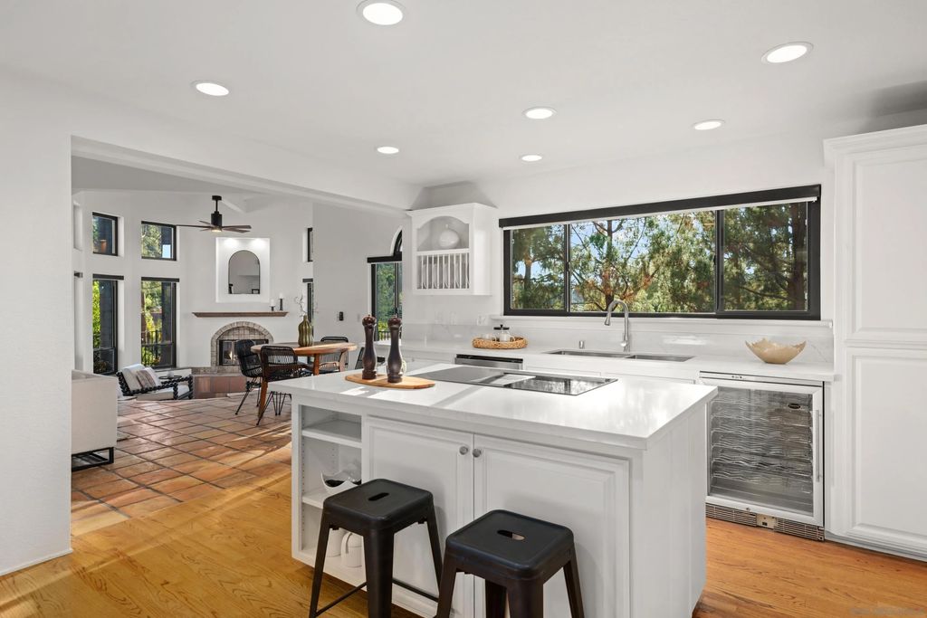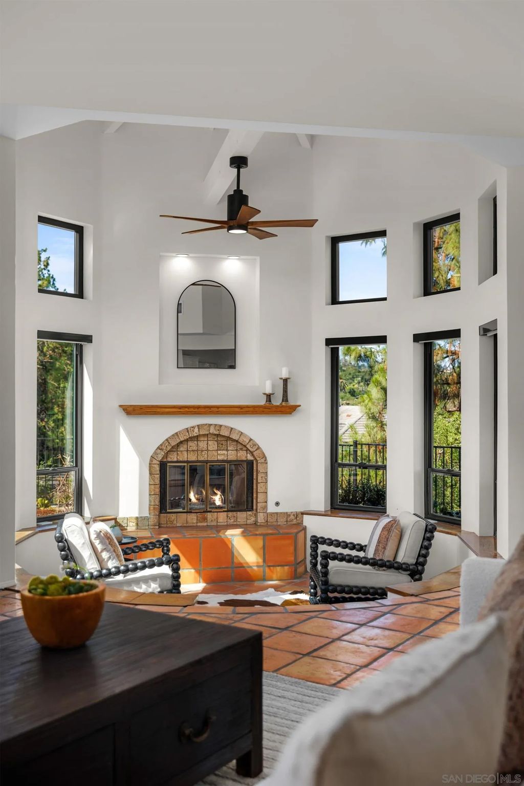 Tucked away in the exclusive enclave of Green Valley Knolls, this refined estate offers an elevated lifestyle where luxury meets nature on 1.17 serene acres. Spanning 3,699 sq ft, this custom built home is a private sanctuary with expansive mountain and hillside views that unfold with every sunset. A sweeping stone patio, energy-efficient new doors and windows throughout the home, and a completed property pro landscape design invite peaceful evenings under glowing skies. Step inside to discover airy, sunlit spaces with rich hardwood and tile floors, high ceilings, and a seamless indoor outdoor flow. French doors and new windows frame tranquil vistas, while the sophisticated, reimagined kitchen (featuring a high end oversized quartz island, new induction stove top, and custom details) anchors the heart of the home. The primary suite offers a retreat of its own, complete with a fireplace, dual walk-in closets, custom built-ins, and a private deck, ideal for morning coffee or evening stargazing. Four complete bathroom remodels showcase quartz counters, new vanities, upgraded lighting, and beautifully tiled showers, blending luxury with timeless design. Throughout the home, modern enhancements such as a whole house plumbing system with water safety controls, solar shades, and an upgraded irrigation system provide peace of mind and everyday ease. With no HOA, no Mello-Roos, and located within the top tier Poway Unified School District, this estate delivers an uncompromised blend of privacy, luxury, and convenience in one of Poway's most sought-after neighborhoods.