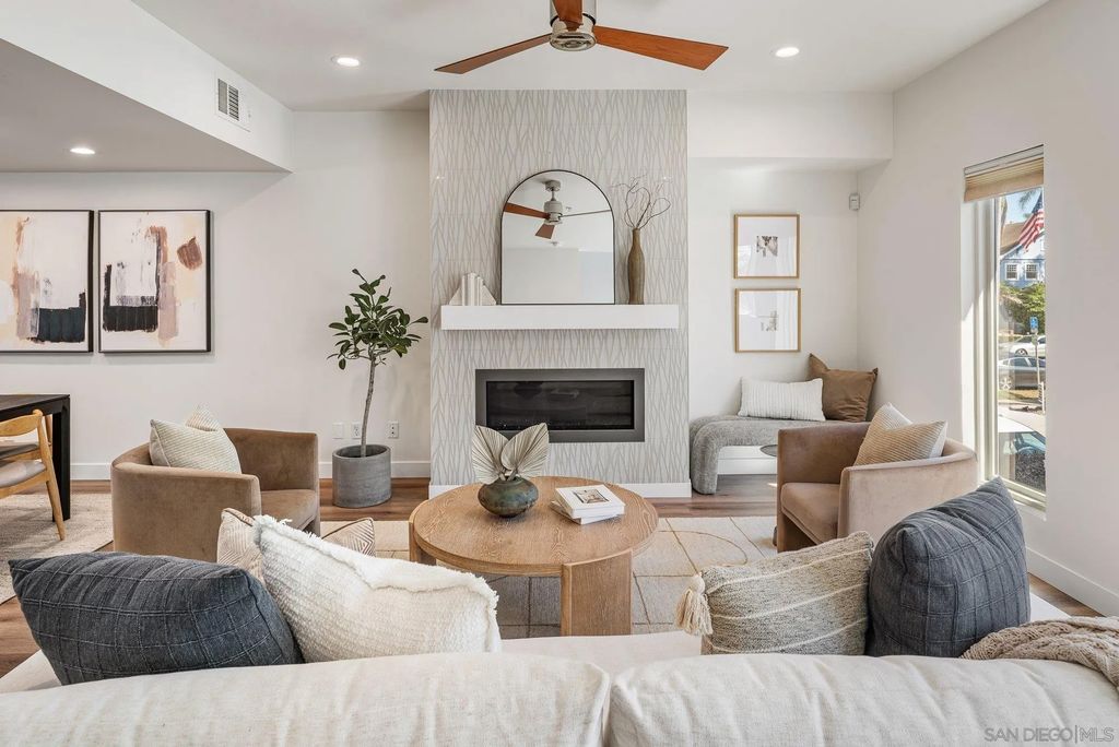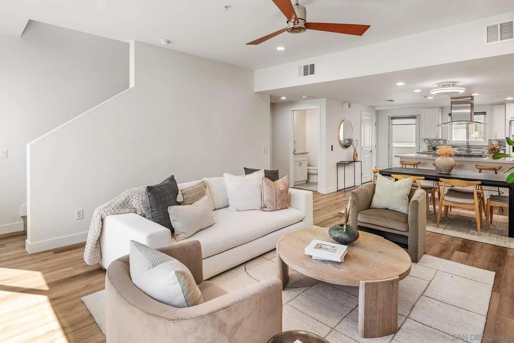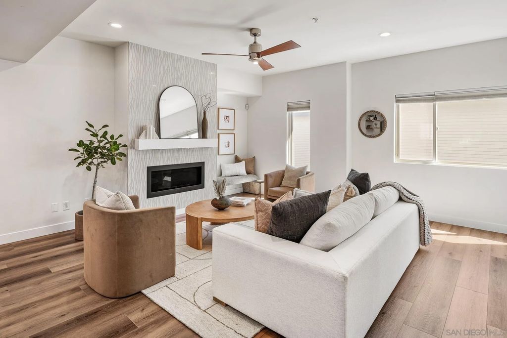 Urban Elegance in the Heart of Hillcrest!! Experience elevated city living in this sophisticated townhome, ideally located in the vibrant heart of Hillcrest with LOW HOA! Featuring a spacious open floor plan, soaring cathedral ceilings, and an abundance of natural light, this home blends modern upgrades with timeless style. Enjoy brand-new flooring throughout, fresh designer paint, and updated lighting that enhances every room. The gourmet kitchen is a chef's dream, boasting stainless steel appliances, a walk-in pantry, and a peninsula with bar seating"”perfect for casual dining or entertaining. The kitchen flows seamlessly into the expansive great room, where a cozy fireplace and oversized windows create an inviting space to relax or host guests. Upstairs, you'll find two generously sized bedrooms, each with its own ensuite bathroom, plus an optional third bedroom or home office"”ideal for today's flexible lifestyle. Step outside to your private terrace and take in breathtaking ocean views and sparkling city lights"”an exceptional setting for entertaining or unwinding. Located just steps from San Diego's best restaurants, boutiques, and parks, this townhome offers the perfect balance of luxury, comfort, and convenience in one of the city's most walkable neighborhoods.