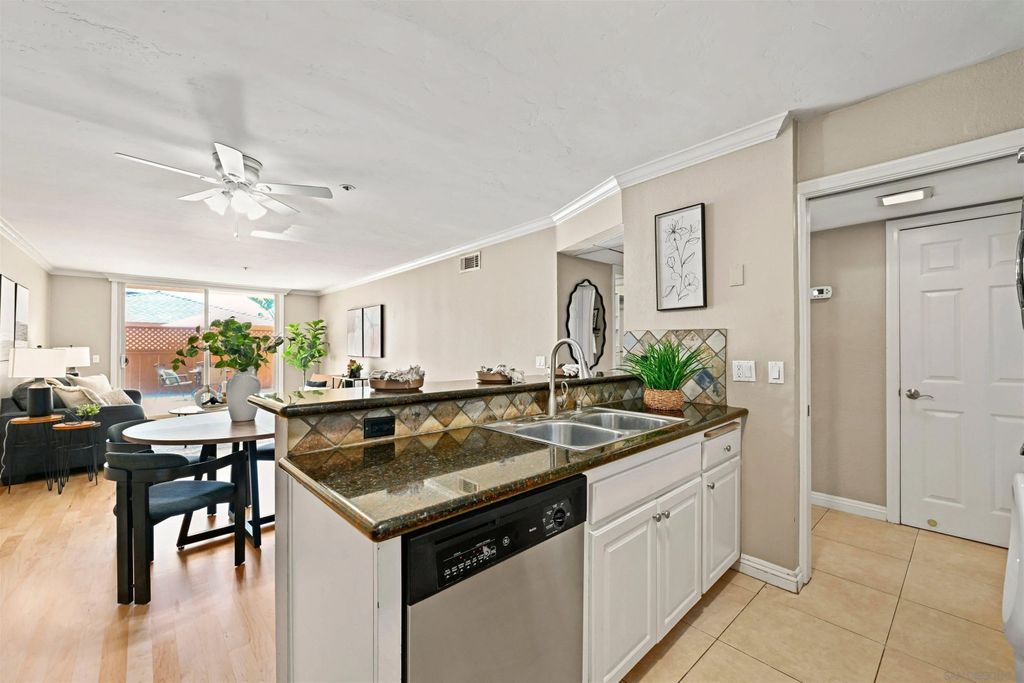 Beautiful Sunset Villas ground-floor condominium located in the vibrant heart of North Park, just down the street from popular restaurants, boutiques, coffee shops, pubs, and the weekly farmer's market. This secure, gated community welcomes you into an open-concept living space featuring refinished hardwood floors and crown molding. The spacious living room opens to an expansive private patio"”ideal for entertaining, dining al fresco, or simply relaxing. The layout also includes a dining area and a well-appointed kitchen with white cabinetry, granite countertops, slate backsplash, stainless steel appliances, and bar seating. A convenient stackable in-unit washer/dryer is included. The grand primary suite offers both a walk-in closet and an additional closet, along with a full bathroom and a half bathroom featuring maple cabinetry and granite countertops. One assigned parking space is also included. Set in one of San Diego's most desirable neighborhoods, this move-in ready home offers the perfect blend of comfort, style, and urban convenience. Welcome home!