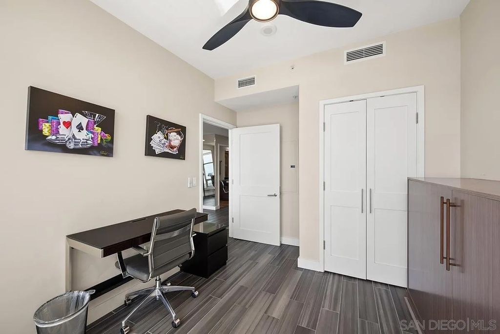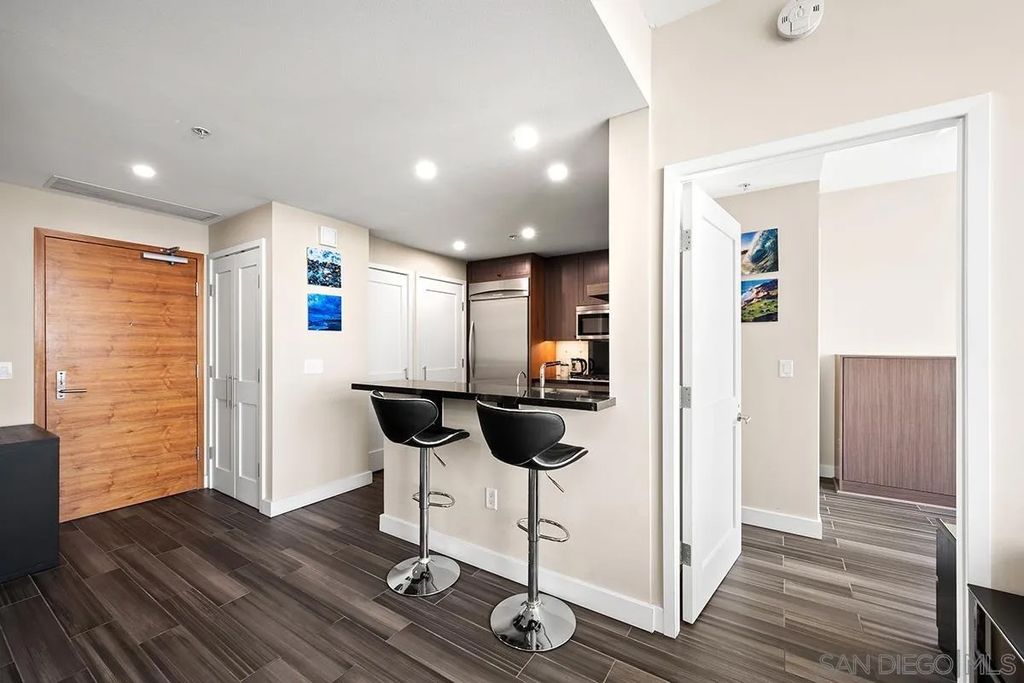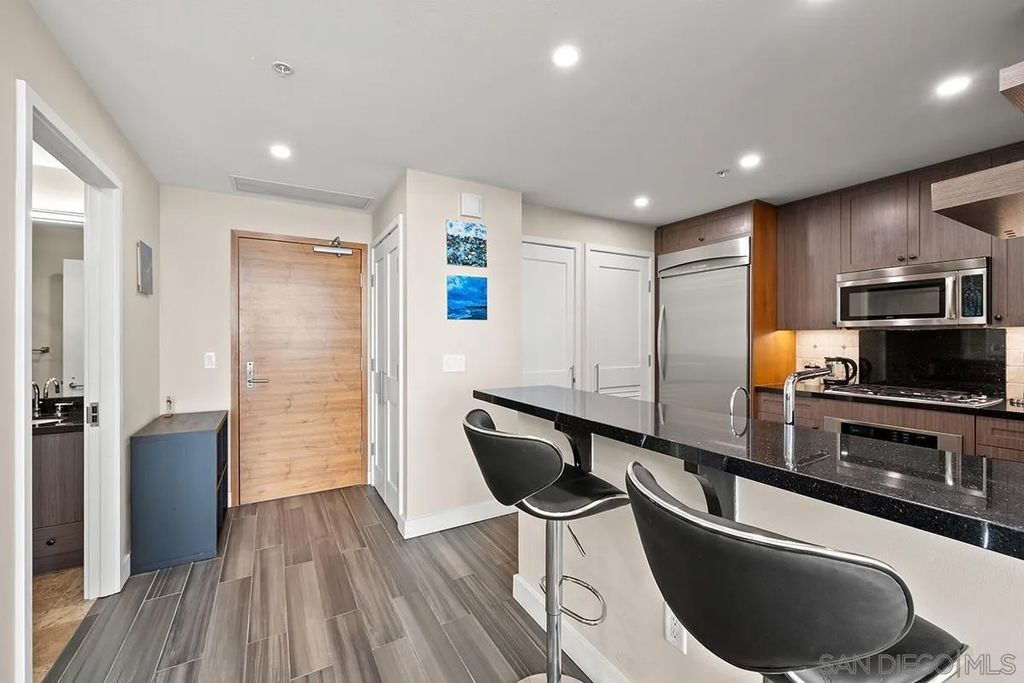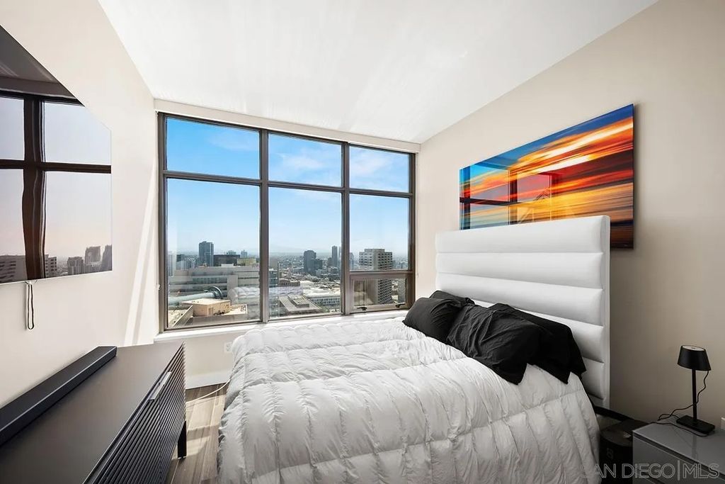 Arguably the most dramatic downtown skyline view you'll find! This elegant view unit is replete with natural light and views. Once you walk in, you feel the city ambiance. Many tastefully completed updates create an urban feel for the modern downtown resident to include: new cabinets, updated counter tops, solid surface flooring, and more. Electra is located in the heart of the cities emerging development and within a stone throw to the coveted San Diego Bayfront. Enjoy the nightlife and eateries that San Diego is known for just steps away!