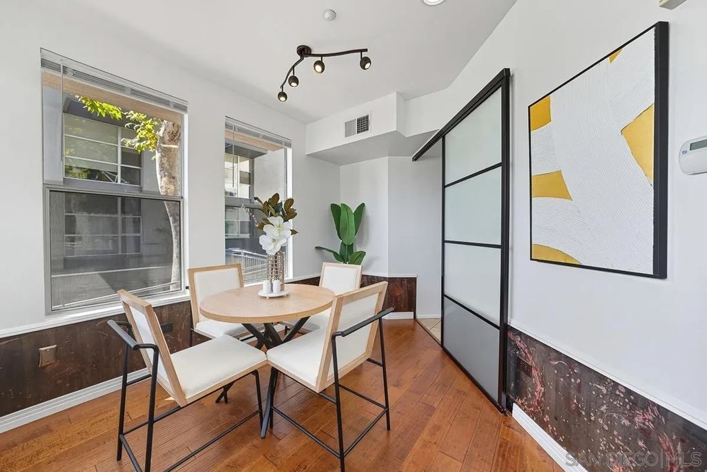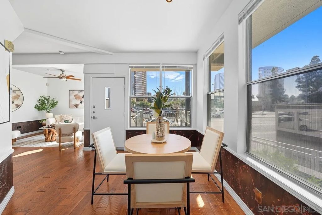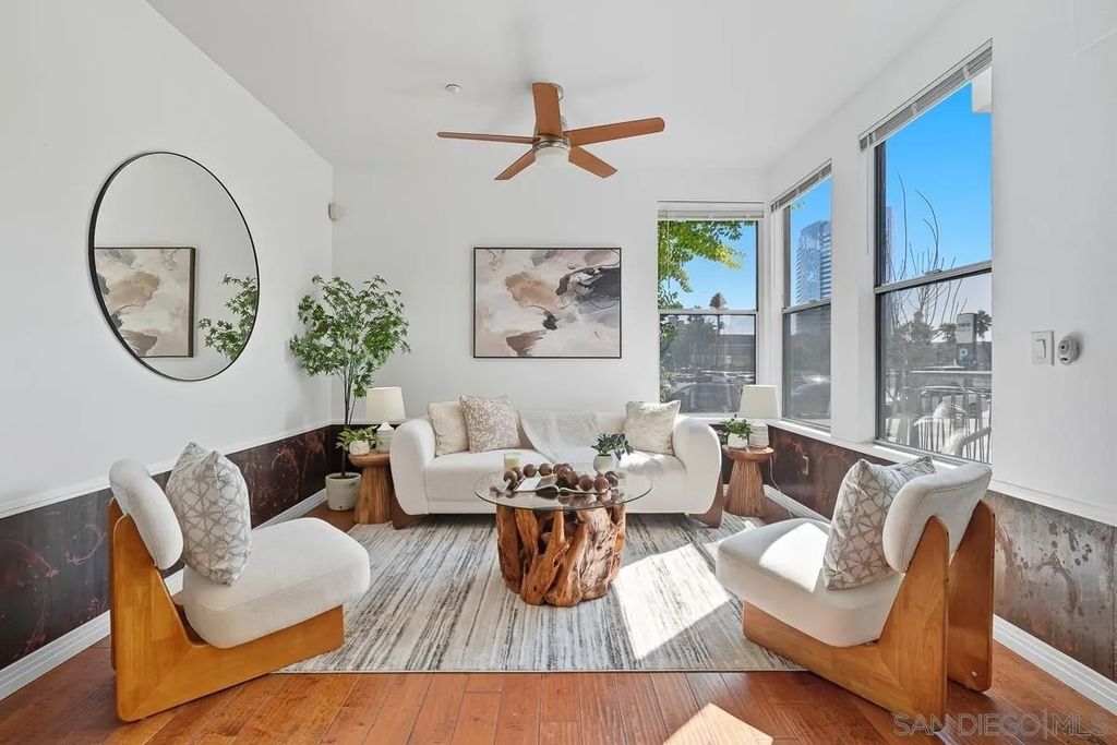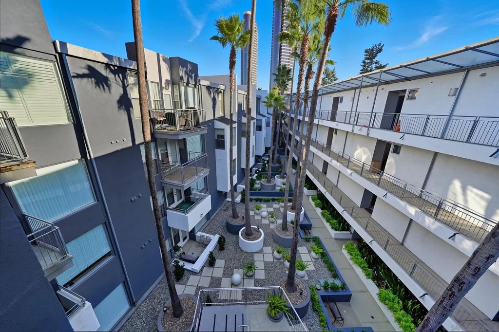 This rarely available 2-story corner townhome offers 1,360 sf of contemporary living in one of Marina district's most desirable locations. With its private street-level entry, soaring ceilings, and oversized windows, this home is the largest of its kind at Atria on Market and perfectly blends privacy, style, and convenience. Inside, you'll find living areas bathed in natural light, solid hardwood flooring, complete with 2 primary suites. The open-concept kitchen features custom cabinetry and flows seamlessly into the dining and living spaces - ideal for entertaining or simply enjoying the vibrance of urban life. Unwind on your own front patio, where you can relax and enjoy San Diego's golden sunsets with a glass of wine or a good book. This unit also comes with 2 assigned, underground parking spots. Designed by acclaimed architect Rob Quigley, Atria on Market is a modern garden-style building that brings nature into the heart of the city. Residents enjoy resort-style amenities including a 24-hour fitness center, business center, conference room, and rooftop BBQ lounge with skyline views. On-site security adds peace of mind, and the location is unbeatable. Steps from Ralphs, and a short walk to Seaport Village, the waterfront, Gaslamp, Petco Park, and all of downtown's premier dining, shopping, and entertainment. Whether you're looking for a vibrant lifestyle or a smart investment, this Marina District home has it all.