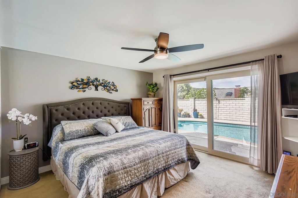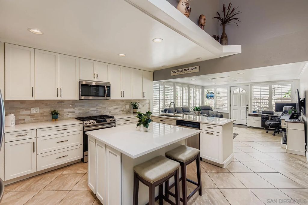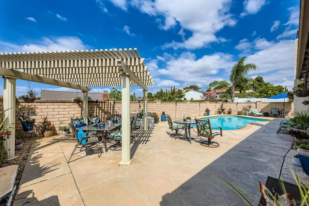 Welcome Home ~ Single-story remodeled Poway home ~ Sunset View~ solar serves the house & pool. Bright/Light/White kitchen~ quartz counter tops, stainless appliances, tile floors, skylight, & cathedral ceiling, plus a bonus/Family room open to the kitchen & privacy shutters. Living room features a tiled fireplace (gas/wood). Updated baths, luxury-vinyl flooring, new doors & knobs, lighting, ceiling fans, electrical outlets, closet doors & built-ins. guest bedroom includes a built-in Murphy bed. Finished garage, built-ins, 220V. Sparkling pool, Mountain View, mature low-maintenance landscaping. NO Mello Roos, No HOA, Heart of Poway, award-winning PUSD, Poway Lake, Parks, trails, shopping, & dining nearby. Recent updates: Dual pane windows, New roof 2013, HVAC 2003, water heater 2024 (40 gal), Solar 2021. 5" floor molding, Kitchen Island moves with tile underneath, Cabinets have pull-outs, trash container included inside the cabinet, drawer organizers, soft close drawers, spice rack, storage space for large cookie sheets, & kitchen ladder. Lift in Garage & pull down Attic ladder in Family room/Bonus room is 200 sq ft, no permit known, included in the square footage of 1,500 on this listing according to the insurance company. Pool replastered in 2015. Masonry Block Fence/wall. Front fascia and trim recently replaced. Garage cabinets & Shed convey.