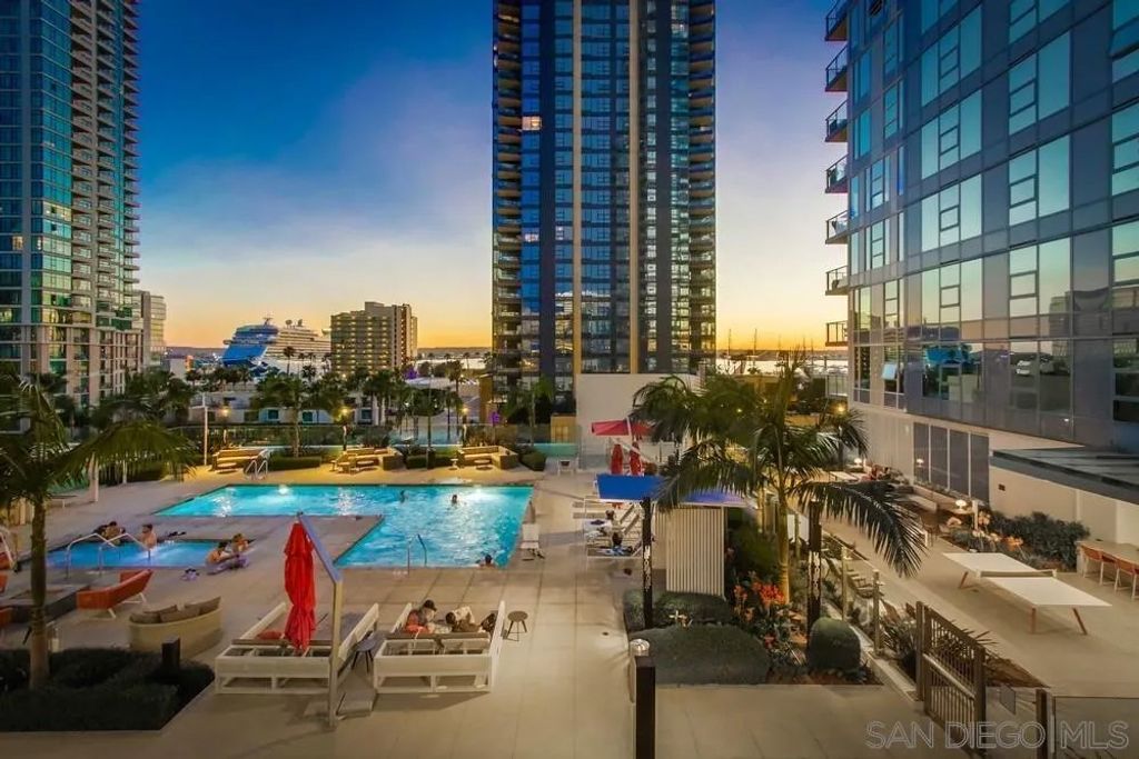 Views from every room! 29th floor Residence at Savina, a coveted Downtown San Diego location steps from Little Italy. This NW corner home looks out to Balboa Park, Sea World and across the bay for sweeping views and sunsets. Generous outdoor patio, modern open concept kitchen with top of the line Thermador appliances and wine refrigerator. Savina offers concierge services along with incredible amenities including resort area pool and spa, steam/sauna, incredible fitness center and more. Side by side parking spaces and extra large storage included with home.