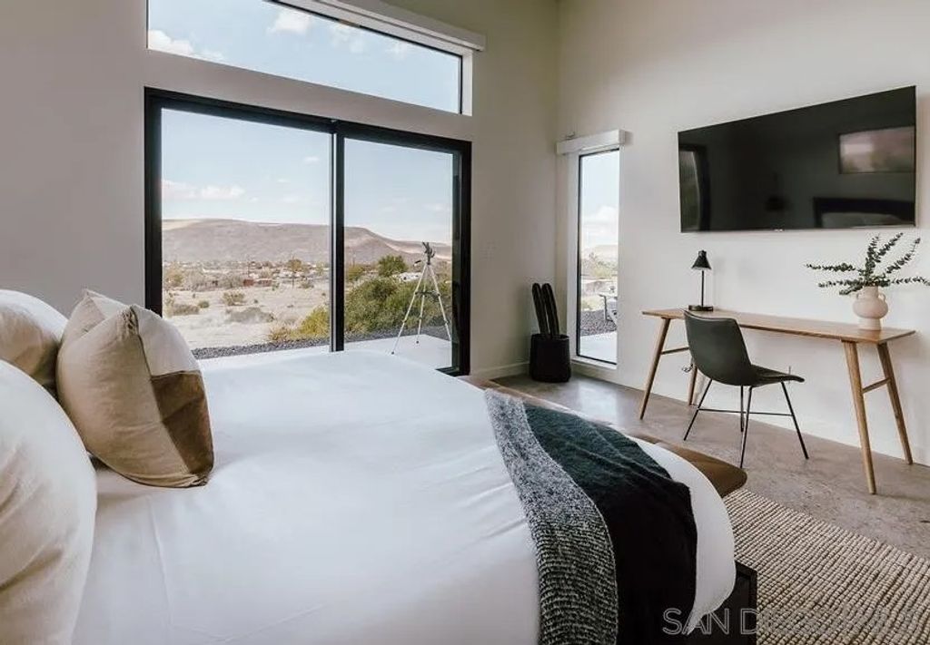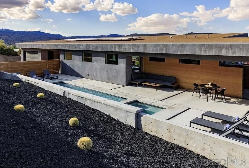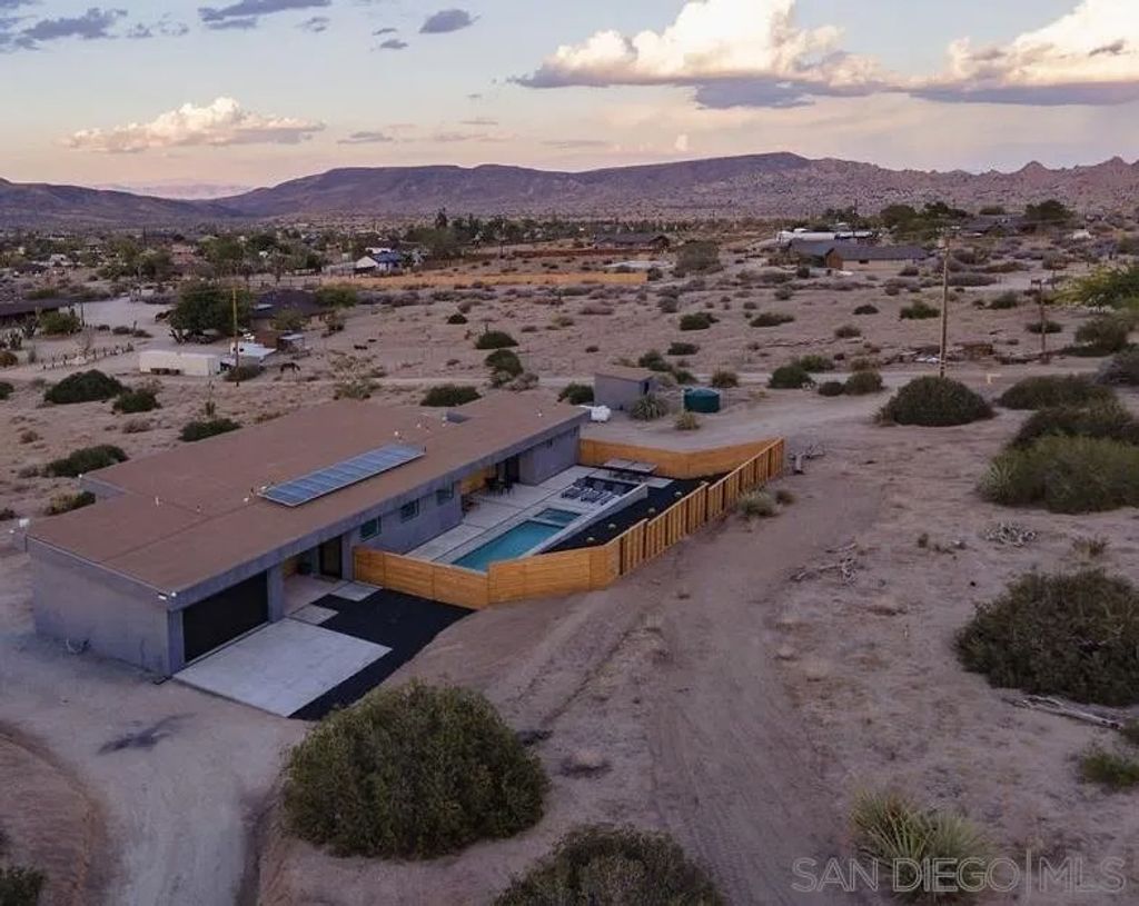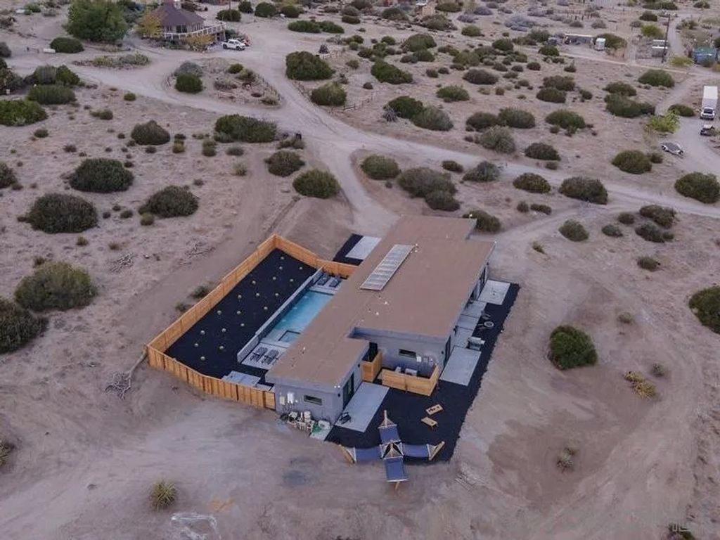 A new modern home perched on a peaceful hill looking over Pioneertown! This prime location allows you to hop over to Pappy and Harriet's and see a concert or grab dinner! If you are looking to Visit Joshua Tree, the park entrance is only a 20 minute drive. However, with a pool, hot tub, custom hammocks, firepit, games, multiple outdoor areas, this home has everything you need for a peaceful home.