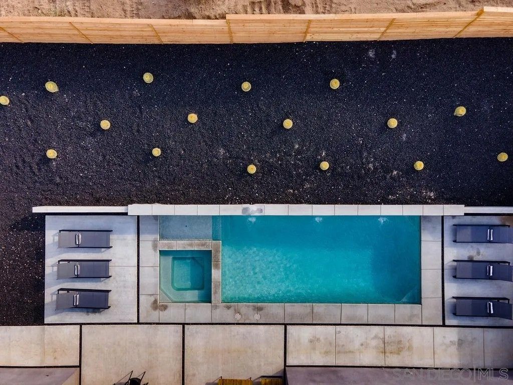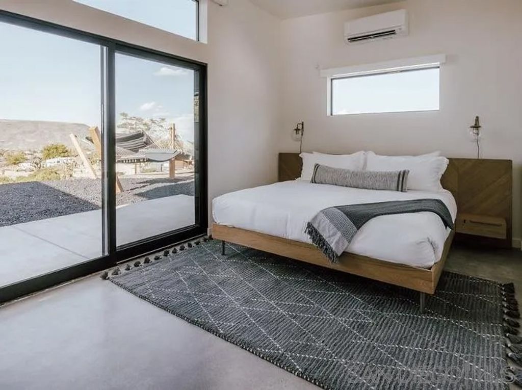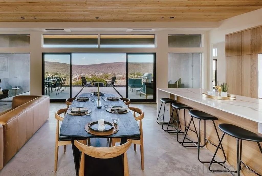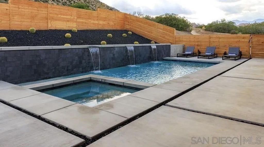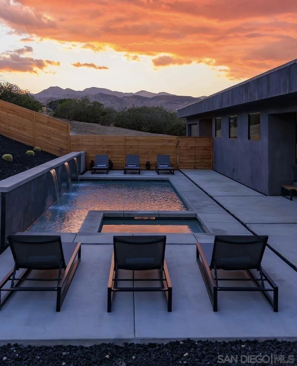A new modern home perched on a peaceful hill looking over Pioneertown! This prime location allows you to hop over to Pappy and Harriet's and see a concert or grab dinner! If you are looking to Visit Joshua Tree, the park entrance is only a 20 minute drive. However, with a pool, hot tub, custom hammocks, firepit, games, multiple outdoor areas, this home has everything you need for a peaceful home.