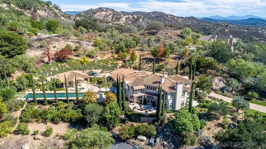 This Breathtaking Custom Estate designed by renowned architect Howard Spector, provides exceptional privacy. Complemented by Award Winning Landscape, spectacular lap pool w/imported antique fountain & lavish stone patios. Appx 5,300 sf in the main house and spacious 700sf detached poolside Casita w/full kitchen & bath. Highly detailed interior finishes include, Custom steel & glass entry doors, William Ohs Custom designed cabinetry, hand carved woodwork details in library/office, exquisite brass & iron stair railings, deep casement windows, solid stone flooring, 4 fireplaces and more! See supplemental remarks for more info. Property features continued: Two piece boosted tile roof with hand made clay tiles, Leased Solar, Saltwater pool option, water purification system, monitored alarm, extensive grounds with acres of usable land. Main home and casita are fully fenced and gated. Adjacent 6.08 acre lot parcel # 189-121-27-00 is also available for additional purchase with this listing, seller prefers to sell together. Estate is located in the Westerly most border of Valley Center appx 1,500 ft from East Escondido. Just minutes from highway 15, California Center for the Arts and numerous fine dining and entertainment venues on and near Grand Ave.