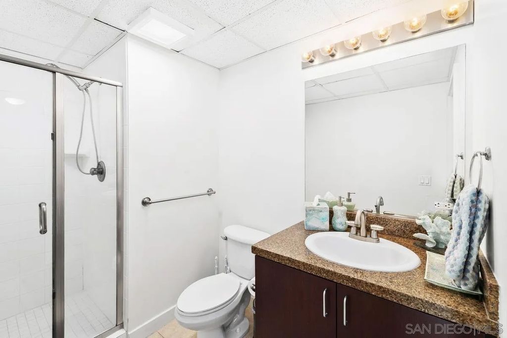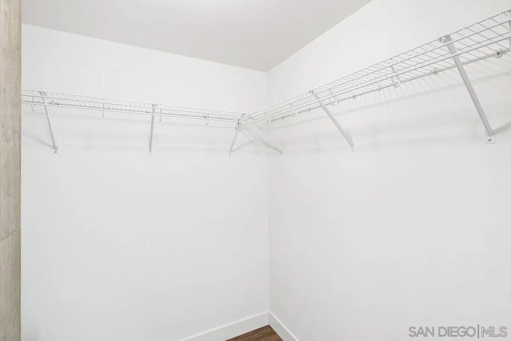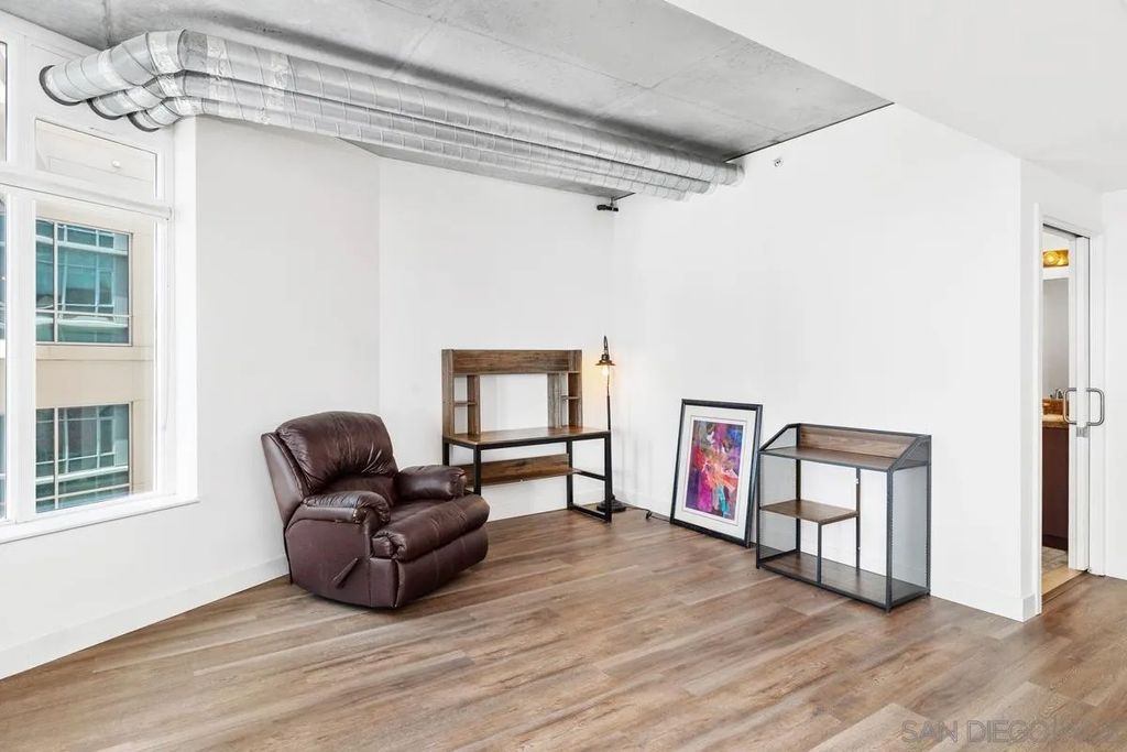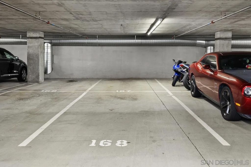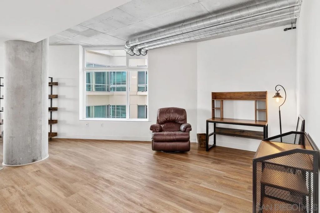 Welcome to Smart Corner, where modern design meets the energy of city living. This expansive 5th-floor corner unit offers 1,422 square feet of stylish, open-concept space with soaring ceilings, exposed concrete accents, and walls of windows that flood the home with natural light. Freshly painted and upgraded with high-quality vinyl wood-plank flooring, this home seamlessly blends sophistication with comfort. The spacious kitchen is perfect for gathering, featuring a central island with a breakfast bar, stainless steel appliances, and ample cabinetry. The open floor plan flows seamlessly into the living and dining areas, while a large covered balcony invites you to enjoy sweeping city views. The split-bedroom layout with 2 well-defined bedroom areas, with a generous primary suite boasting a walk-in closet and ensuite bath, plus an open secondary bedroom area and full bath ideal for guests or a home office. This home includes in-unit laundry and two tandem parking spaces, offering convenience and ease of living. At Smart Corner, you'll enjoy resort-style amenities including a rooftop terrace with 360° views of the city and bay, a community garden, BBQ area, hot tub, gym, and onsite management with security. Perfectly situated, you're just blocks from Balboa Park and minutes from Downtown, Little Italy, Petco Park, and San Diego Bay, with easy access to freeways and public transit. Experience the very best of urban living in one of San Diego's most vibrant communities.