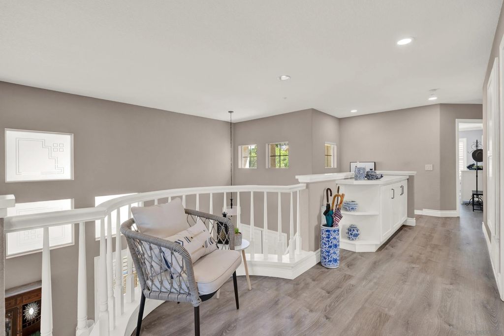 Emerald Heights stunner with ocean views! This fully renovated home offers a seamless blend of style, comfort, and functionality. Step inside to soaring ceilings and a bright formal living and dining room framed by glass doors showcasing expansive inland and ocean views. The dream kitchen features all-new finishes, an oversized pantry, and abundant storage. The spacious family room includes custom built-ins and picture-perfect windows, with a large laundry room and half bath conveniently located on the main level. Upstairs, new LVP flooring leads to an open hallway and four bedrooms, including a stunning primary suite with a private balcony to enjoy sunset and ocean views, an incredible remodeled bathroom, and a generous walk-in closet. The home also features fully owned solar and a new HVAC system, offering both comfort and efficiency year-round. The backyard is designed for entertaining with low-maintenance landscaping and plenty of space to gather. Located in the desirable gated community of Emerald Heights and zoned for the San Marcos School District, residents enjoy no Mello-Roos, a low HOA, and resort-style amenities including 24/7 security, walking trails, basketball courts, gym, Jr. Olympic pool, playground, kiddie pool, clubhouse, and a full calendar of community events throughout the year.