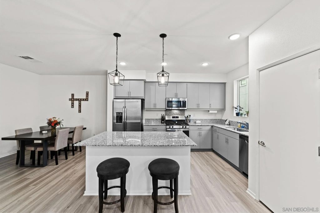 Welcome to 5502 Sandcliff Lane #147, a stunning corner end-unit Solmar Plan 2 model home"”one of the last model homes sold in the sought-after Playa del Sol community and VA financing approved! This beautifully upgraded residence features 2 bedrooms, 2.5 baths, and a 2-car garage across approximately 1,310 sq. ft. of thoughtfully designed living space. Step inside to an open-concept main level filled with natural light, highlighted by a sleek modern kitchen with stainless steel appliances, quartz countertops, a large center island, and designer cabinetry. The primary suite includes a spa-like ensuite bath with dual vanities and a generous walk-in closet, while the secondary bedroom offers flexibility for guests, family, or a home office. Enjoy smart-home features including smart switches, smart garage door, and smart water heater for modern convenience. The community boasts resort-style amenities"”an impressive clubhouse with a state-of-the-art gym, a heated pool complex with spa and hot tub, and two clubhouses (one for everyday use and another available for private events). Ideally located near shopping, dining, entertainment, and top-rated schools, with easy access to the 805 and 905 freeways, this home offers the best of modern South San Diego living"”stylish, smart, and community-focused.