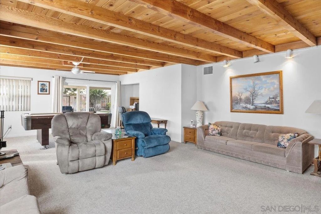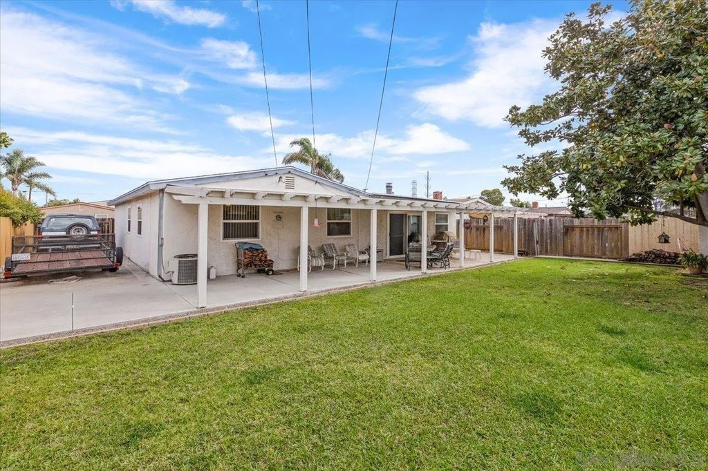 Beautifully maintained single-level home in North Clairemont with great curb appeal, rare parking for a boat or RV, an expansive backyard, & A/C! This special property has been lovingly cared for & is now ready for its next chapter. Step inside to lots of light, charming details, great craftsmanship, & a flowing floor plan with the living room, dining room, & kitchen separated from the home's 4 generous bedrooms. The kitchen was previously updated with granite counters, gorgeous wood cabinetry, & lots of storage. A fully permitted bonus room was added, increasing the square footage of the original home & adding extra functionality as a family room, den, craft space, game room, studio, or office. Featuring beautiful wood-beamed ceilings & a stone-surround fireplace with heatilator, this room is filled with possibilities! All of the secondary bedrooms are spacious & light-filled. The primary suite showcases dual closets & an ensuite bathroom for additional privacy. A full bathroom in the hallway completes the interior. Outside, the backyard includes a covered patio area, a magnificent grass lawn, mature landscaping, & dedicated parking for a boat/RV/trailer that is accessible from the street through a separate gate. No HOA & no Mello-Roos! A short walk to Hawthorne Elementary. Close to all of the incredible restaurants, shopping, & entertainment options in Clairemont & the surrounding neighborhoods, plus you'll be just a short drive to freeways, beaches & Downtown San Diego. Don't miss this one!