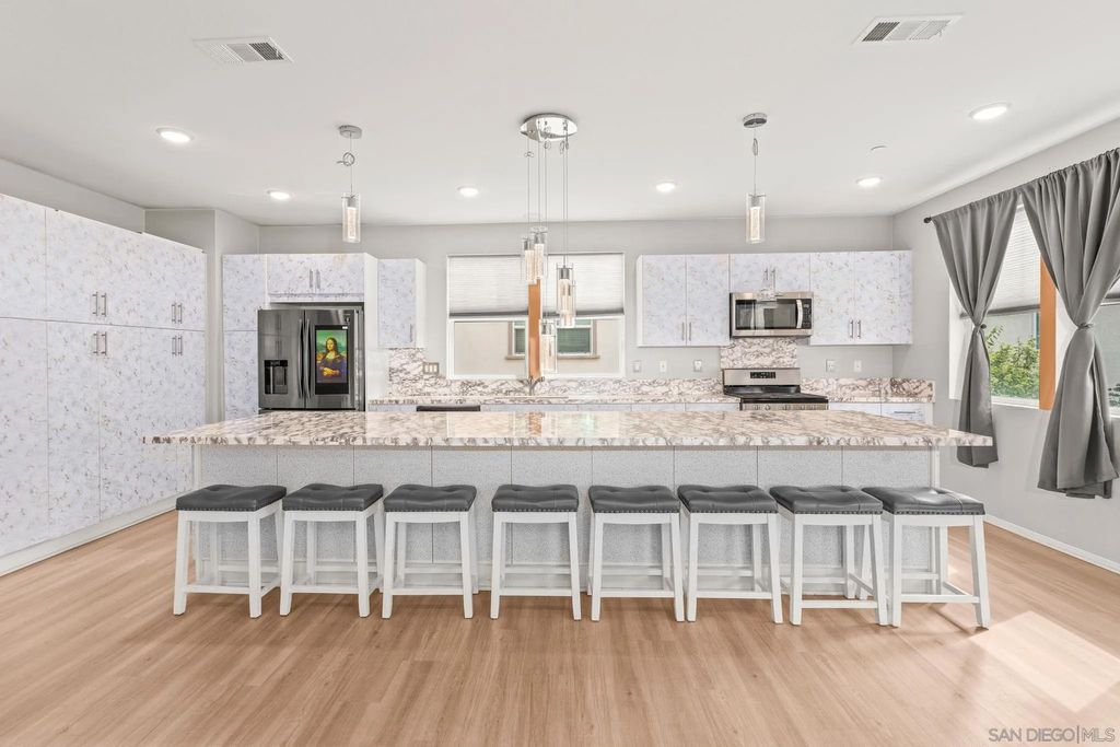 Wonderful value in San Diego! The last model match sold in July at $735,000. With some light cosmetic fixes, create automatic equity- a fresh coat of paint, new carpet and removing the peel and stick contact paper off the cabinets and countertops, you will have a beautiful new home in the Playa del Mar complex! This three story townhome was built in 2019 and features a two car garage with room for storage and like new epoxy floors. The main living space is large and open concept with a huge island, perfect for entertaining. Once you peel off the contact paper, you will find beautiful quartzite counter tops and white cabinets. On the top floor you will find 3 bedrooms, 2 full sized baths and a stacked laundry closet. The best part of this home are the incredible amenities within the gated complex- resort like pool, spa, outdoor showers, great gym space, locker rooms, BBQ area, club houses, play ground, park and so much more! This home is a must see!