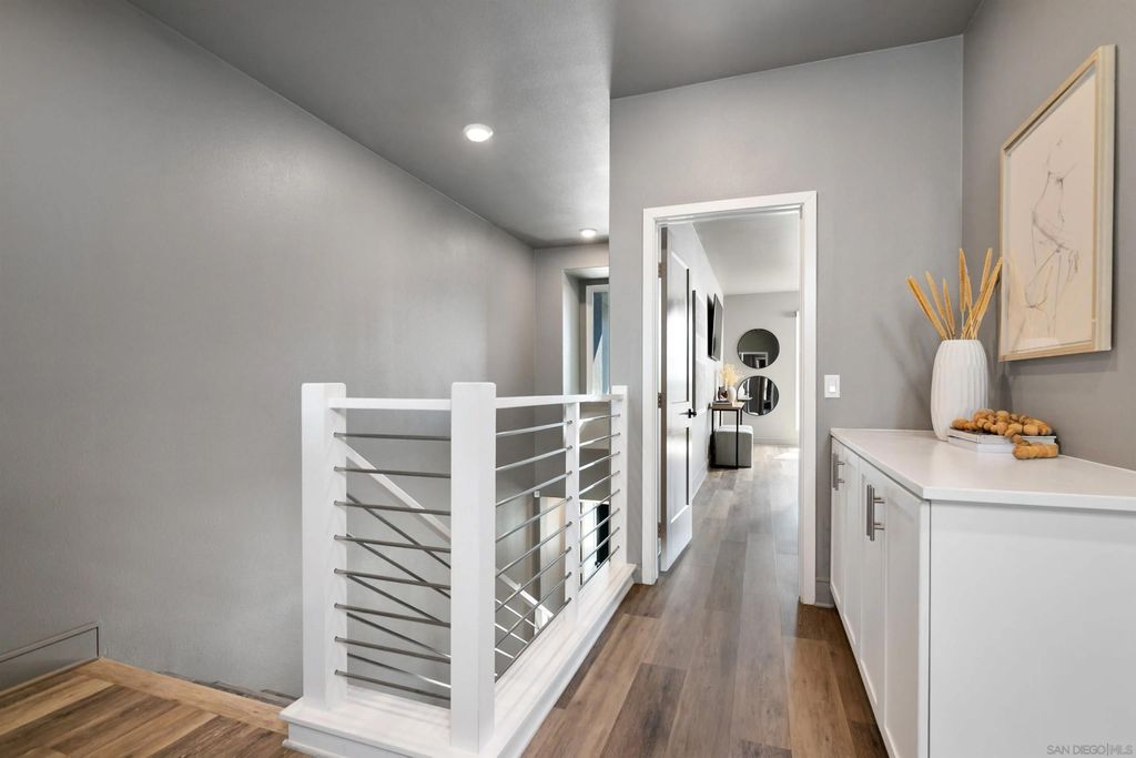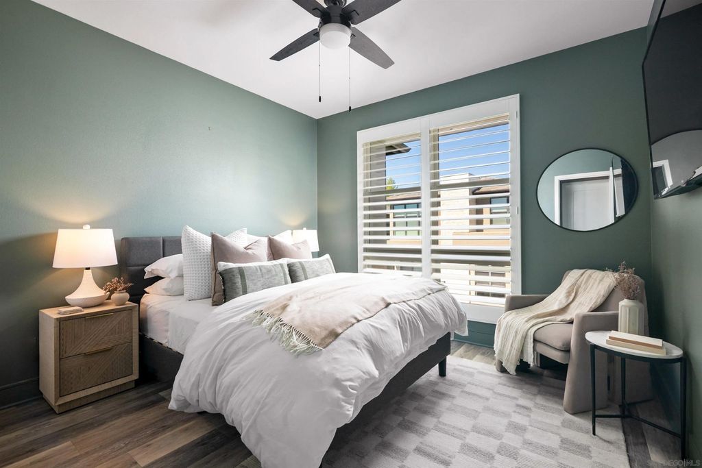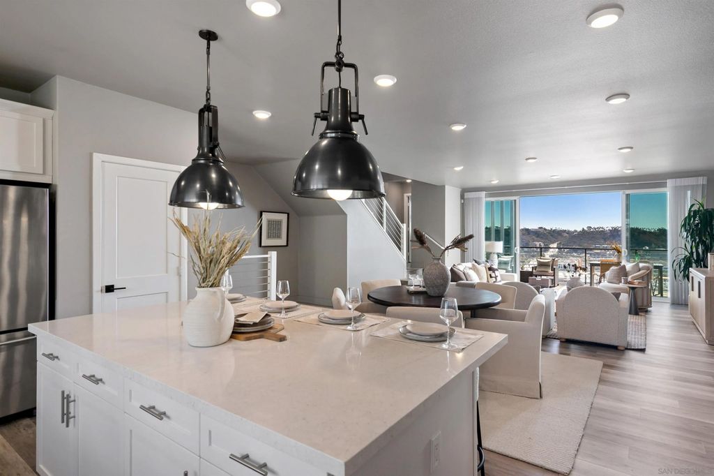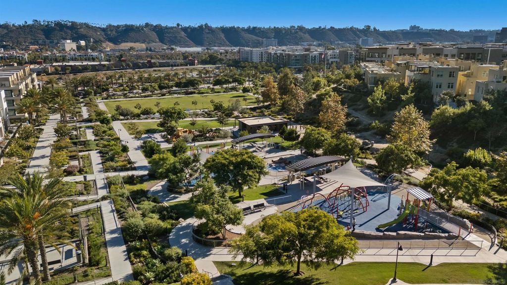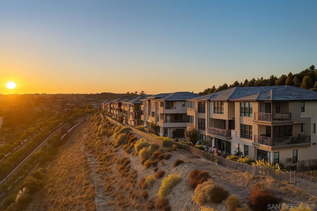 Welcome to your elevated escape in The Promontory at Civita. This 3-bedroom, 2.5-bath residence offers an extraordinary vantage point with sweeping views of the valley and the Civita community. Each day begins with golden sunrises and ends with glowing sunsets and twinkling city lights. An open-concept layout and soaring ceilings frame the scenery from every angle, filling the home with natural light and an effortless sense of space. The chef's kitchen features an oversized island and flows seamlessly into the living and dining areas. The ideal space to entertain or relax while taking in the view. Upstairs, the primary suite is a serene retreat with floor-to-ceiling windows, motorized blinds, a spa-like bath, and a generous walk-in closet. All bedrooms and the laundry area are conveniently located together on the third level. A finished two-car garage offers epoxy flooring, overhead storage, and a mounted television. Promontory is one of Civita's most exclusive enclaves, perched on a quiet cul-de-sac with ample guest parking and nearby EV charging. Enjoy access to Civita's resort-style amenities, including multiple pools, a fitness center, clubhouse, parks, and scenic trails. Top-rated schools, retail, and dining are just a few minutes away in this highly sought-after community. Centrally located in the heart of San Diego, just 5 minutes to Snapdragon Stadium, 15 minutes to USD or UCSD, and only 20 minutes from the beach, downtown, or the airport.