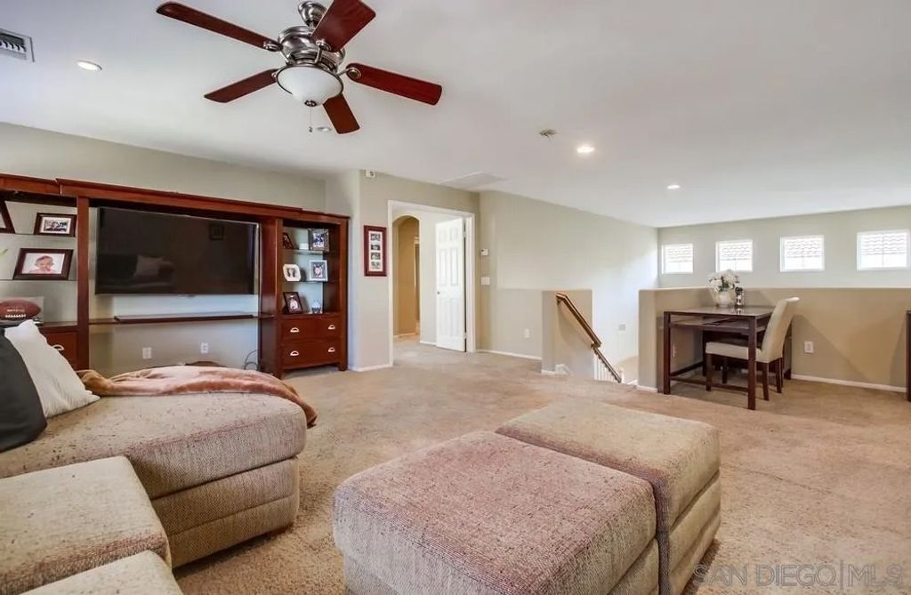 Gorgeous home in highly desirable Santa Fe Hills located on a quiet cul-de-sac. Offering a bright open floor plan with soaring ceilings and abundant natural light. The spacious layout includes a large upstairs bonus loft that provides additional living space. A full bedroom and bathroom on the main level is perfect for guests or a private home office. The kitchen features generous cabinetry and ample counter space and opens to a warm family room with a cozy fireplace. Upstairs are three additional bedrooms including a large primary suite with two walk in closets and a luxurious bathroom with dual vanities. The front bedrooms enjoy views that extend all the way to the ocean. Additional highlights include an upstairs laundry room with a sink, a three car garage, and a large driveway for extra parking. The backyard is beautifully hardscaped & very private with a fire pit plus dog run offering easy care outdoor living. Conveniently located near parks, top rated schools, shopping, dining, Palomar College, CSU San Marcos, and with easy access to Highway 78. Move in ready and a must see. Gorgeous home in highly desirable Santa Fe Hills located on a quiet cul-de- sac. Bright open floor plan with soaring ceilings and abundant natural light. The spacious layout includes a large upstairs bonus loft that provides additional living space. Full bedroom and bathroom on the main level perfect for guests or a private home office. The kitchen features generous cabinetry and ample counter space and opens to a warm family room with a cozy fireplace. Upstairs are three additional bedrooms including a large primary suite with two walk in closets and a luxurious bathroom with dual vanities. The front bedrooms enjoy views that extend all the way to the ocean. Additional highlights include an upstairs laundry room with a sink, a three car garage, and a large driveway for extra parking. The backyard is beautifully hardscaped & very private with a fire pit plus dog run offering easy care outdoor living. Conveniently located near parks, top rated schools, shopping, dining, Palomar College, CSU San Marcos, and with easy access to Highway 78. Move in ready and a must see.