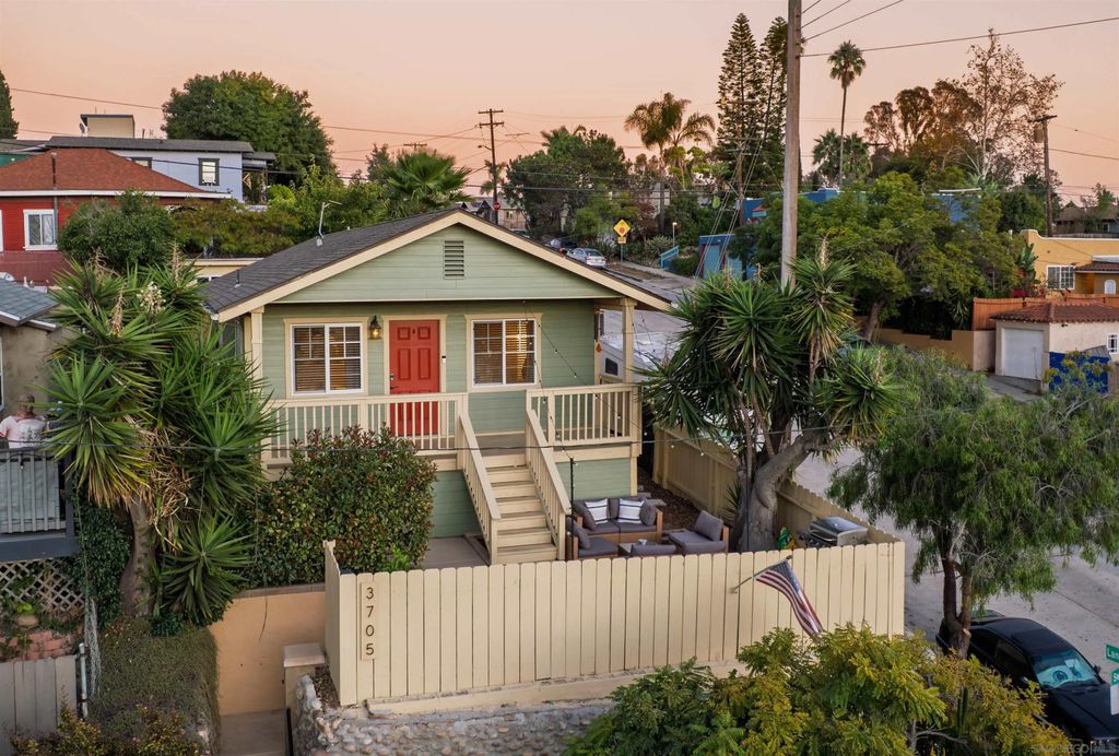 Ideally situated on an elevated corner lot, this timeless North Park cottage perfectly combines classic charm with all the conveniences of modern living. Newly constructed in 2012, this light-filled home lives large with multiple outdoor spaces including a generous entry veranda, terraced front patio and cozy backyard seating area. Inside, the open plan is ideal for entertaining with the roomy kitchen, adjacent dining area and living room with fireplace all sharing uninterrupted sightlines. With convenience in mind, this home comes complete with a primary en suite bath with dual sinks, Indoor laundry and even a mud room off the side entry. Other notable features include a tankless water heater, energy efficient heat pump and Air Conditioning, double pane windows, upgraded ABS sewer line, and a 200 square foot shed ideal for an office, retreat or bonus room. Approximately 100 sq. feet of additional storage is also available beneath the home. Fully fenced with keypad entry gate, this pristine property provides privacy and security all just a short stroll from North Park's great restaurants, nightlife, art galleries and shops.