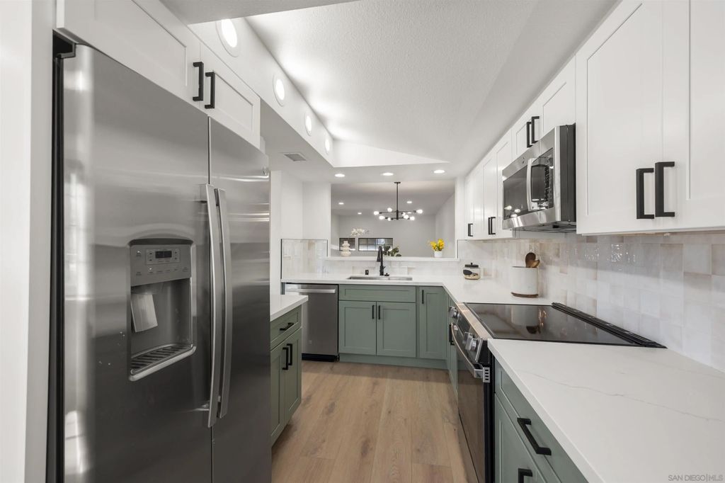 Come see this beautiful bright remodeled tri-level end unit in the heart of San Diego! This attached SFR is VA Approved and priced the same as the last model match sale in the community. This turnkey property features stunning upgrades throughout, including brand-new shaker cabinets in the kitchen and bathrooms, sleek quartz countertops, and durable vinyl plank flooring that adds both style and function. Fresh interior paint, updated lighting, and modern fixtures create a bright and inviting atmosphere. Possibility to add optional 3rd bedroom. Located in a desirable neighborhood, this move-in ready gem offers both comfort and convenience. Conveniently located just off the 8 Freeway with access to Mission Valley shopping, Mission Trails, close to SDSU and everything else central San Diego has to offer.