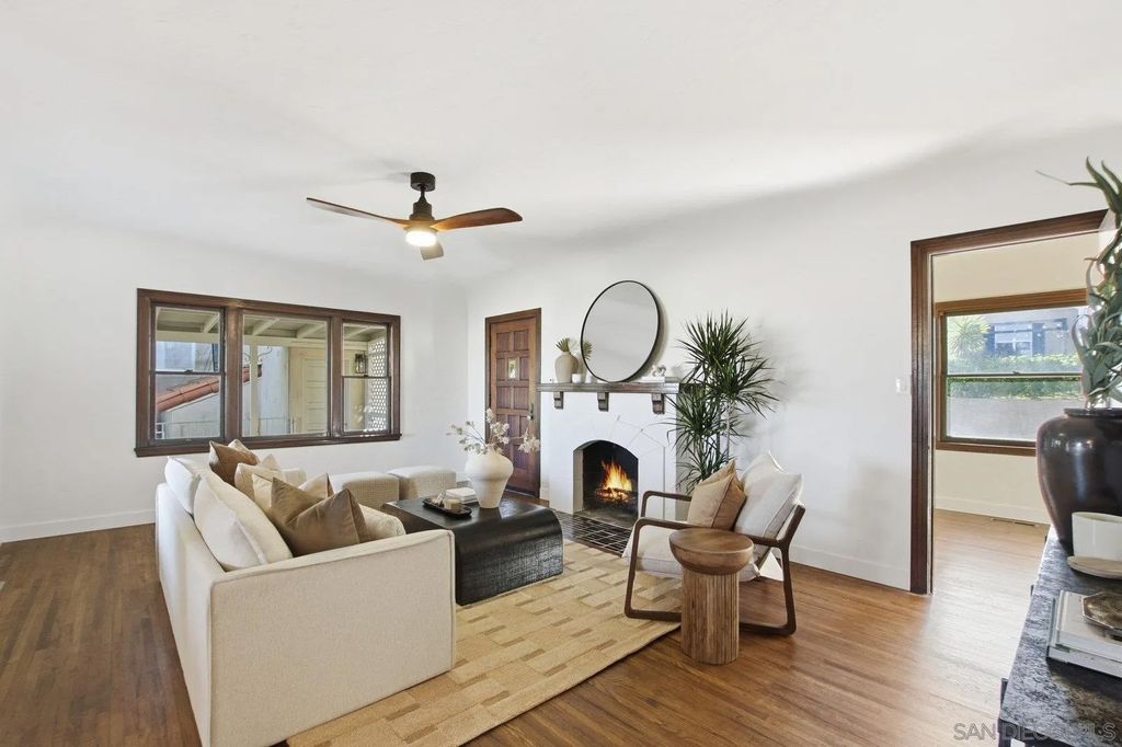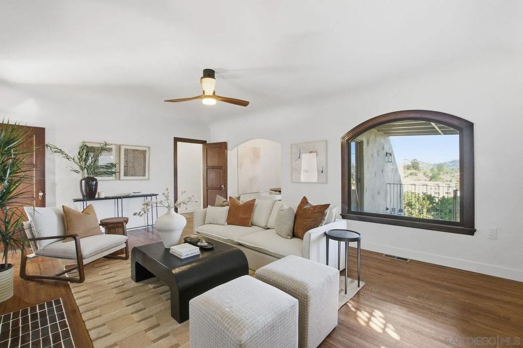 Spanish Charmer with Mountain Views in a Prestigious La Mesa Neighborhood! Perched atop El Capitan Hill and just minutes from La Mesa Village, this beautifully maintained Spanish-style home offers timeless character with modern updates. Enjoy sweeping mountain views and versatile bonus spaces perfect for today's lifestyle. The main level features 3 bedrooms and 2 baths, showcasing refinished original hardwood floors, fresh interior and exterior paint, all-new stucco, and updated recessed lighting. The spacious living room includes a wood-burning fireplace, while the dining area opens to a large covered patio ideal for entertaining or relaxing with a view. Downstairs, you'll find two versatile bonus rooms and a half bath"”perfect for a home office, gym, playroom, or creative studio. Both bonus rooms feature new pine-colored luxury vinyl plank flooring. The backyard includes mature landscaping, a walkway leading to an additional storage area, and ample potential to customize or expand the outdoor living space. A detached garage and generous parking complete this exceptional property. Experience the best of La Mesa living in a highly sought-after neighborhood known for its charm, views, and proximity to shopping, dining, and recreation. Note: new French doors are being installed this week from the dining room to the patio