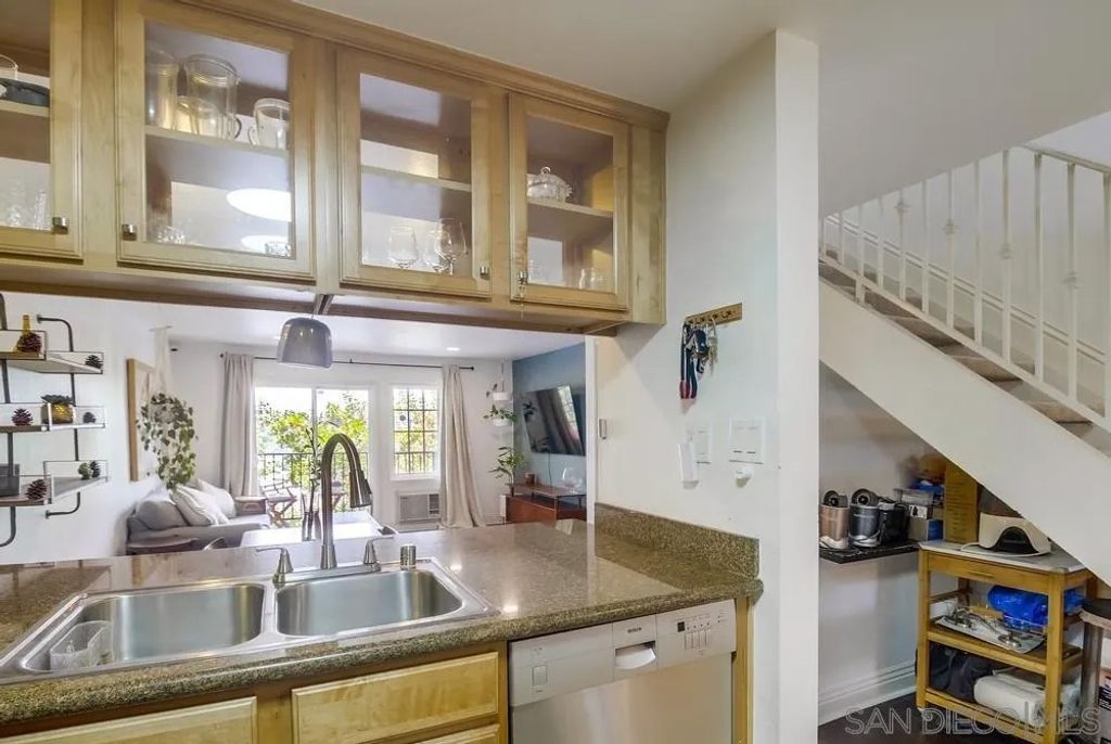 Charming 2-Story Townhome in Desirable Mira Mesa Location. Turn-key 2BR/1.5BA townhome located near Scripps Ranch with easy access to major freeways. This well-maintained home features updated maple kitchen cabinets, granite countertops, stainless steel appliances, and a pantry off the kitchen. Enjoy beautiful laminate wood flooring, vaulted ceilings on the upper level, double-paned windows throughout, and ceiling fans. Two private balconies offer pleasant views and a great cross breeze. Spacious closets provide ample storage. Convenient location close to shopping, dining, parks, and schools. This unit faces Maya Linda with tree top views away from the 15 & parking lot, and is situated in a building with nobody above you. Ideal central location in San Diego. Windsor complex is near shopping, restaurants, a movie theater, a college, and easy access to freeways 15, 163, and 52. This unit gets a very nice cool breeze facing west and beautiful sunsets all year round. This property comes with 2 parking spaces assigned, a washer and dryer inside.