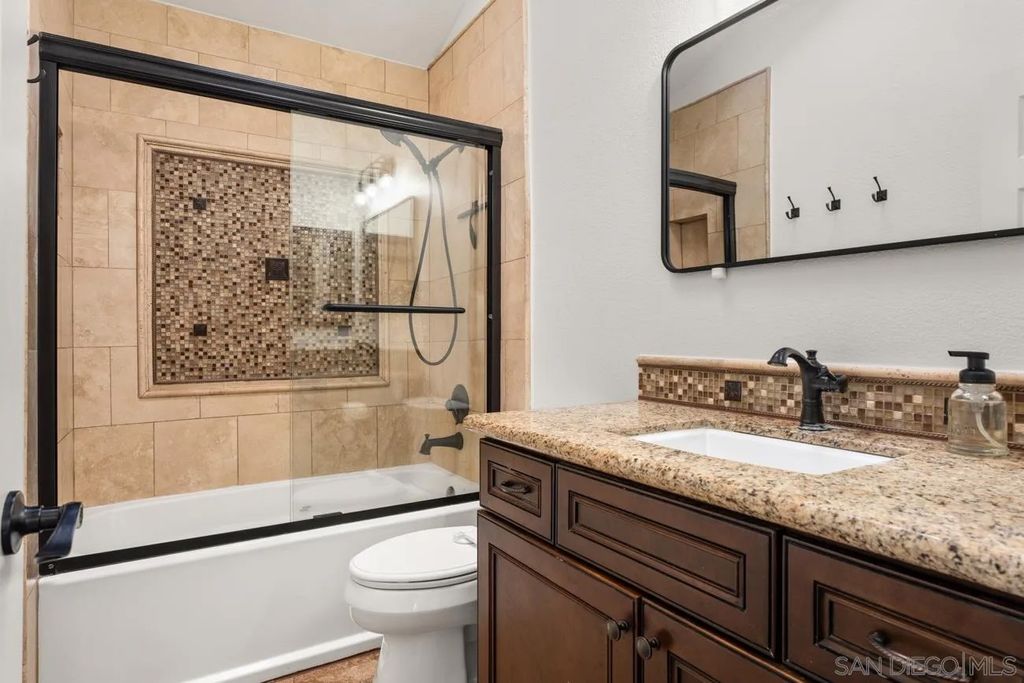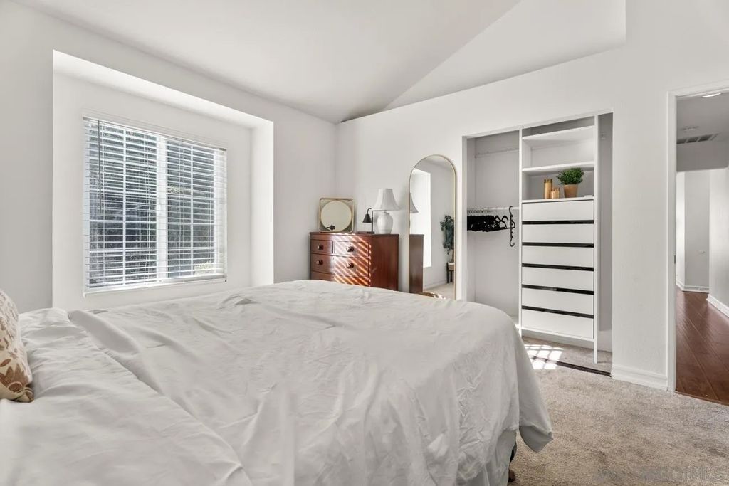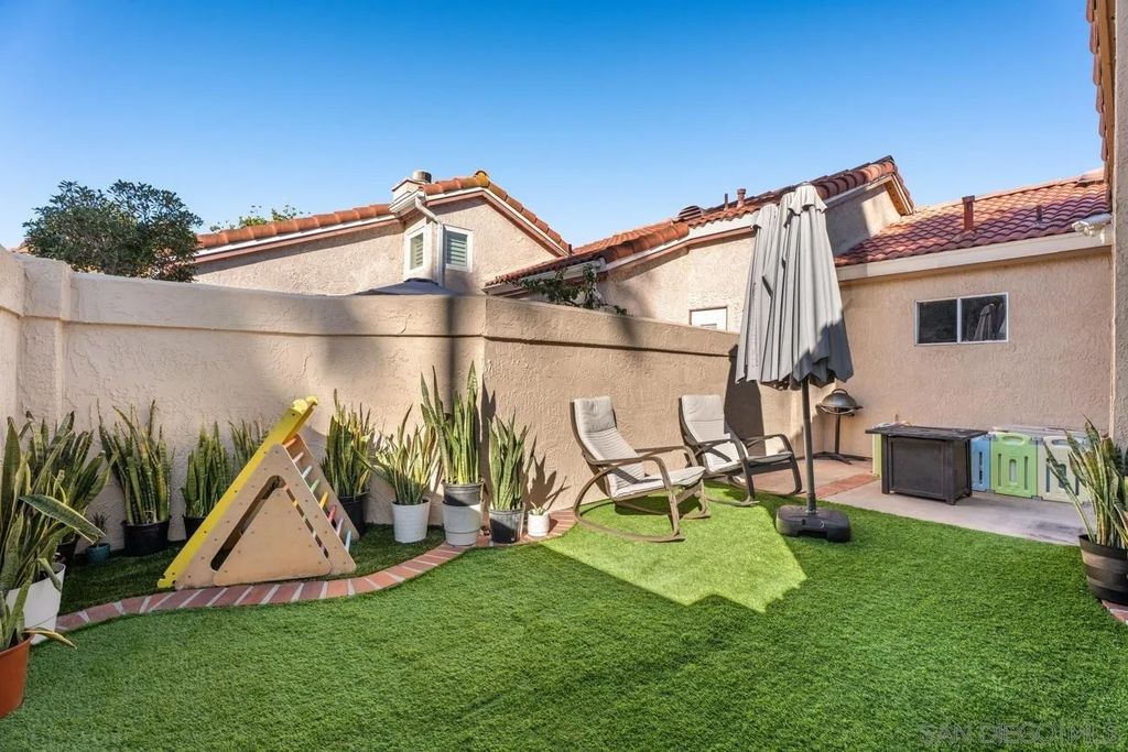Wonderful location in the Rancho Del Rey area of Chula Vista. Unique condo/ twinhome complex. You will love this single level 3BR/2BA home with attached 2-car garage and fenced yard with turf. Located next to the community pool with spa and BBQ area. Community is close to schools and a short drive to restaurants and shopping. Wonderful light and bright floor plan, vaulted ceilings, skylights, upgraded flooring and paint. Renovated in the last 10 years. Dual sided fireplace. Dining room has built in cabinetry. Kitchen with granite countertops & stainless steel appliances. HOA covers community pool, spa & Landscaping. Owner pays all utilities. Central Heat & AC. VA Approved! Primary suite with barn door to bathroom and walk in closet.
