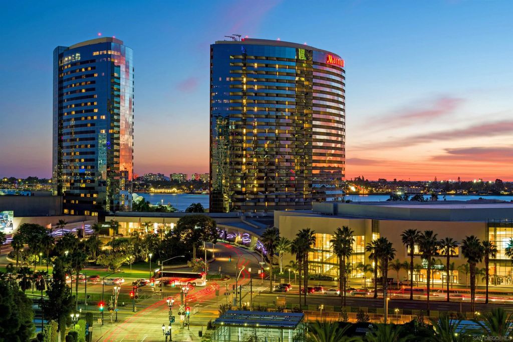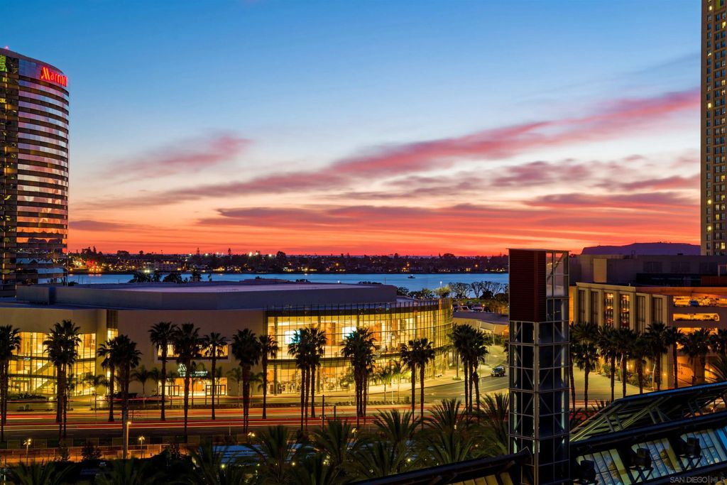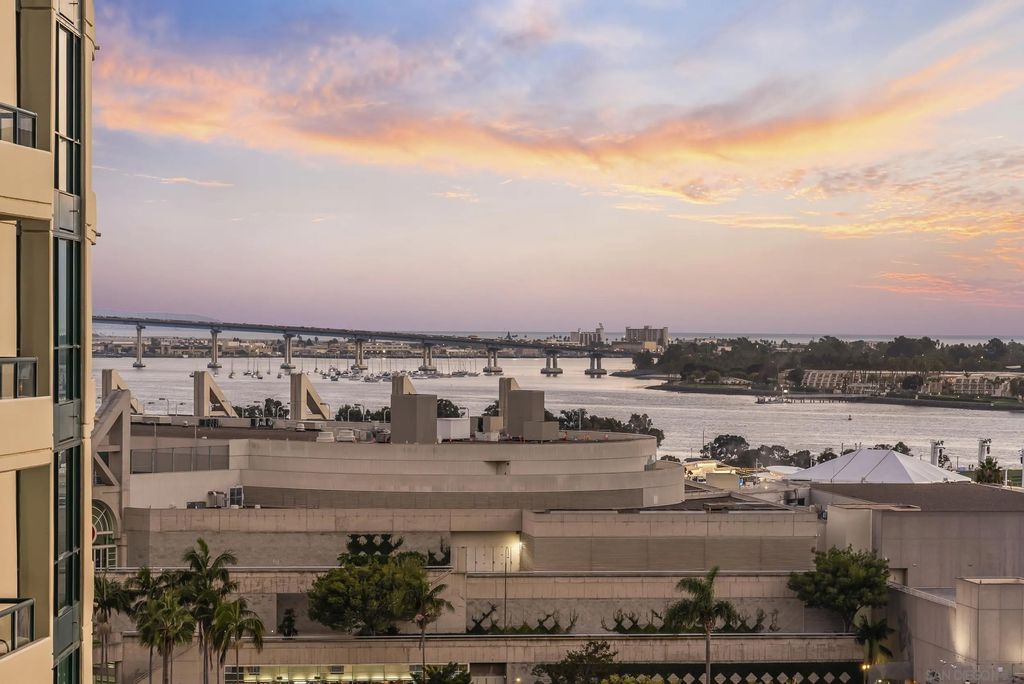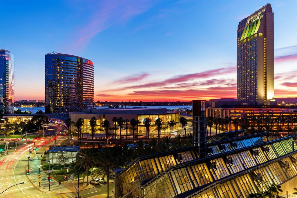 Beautifully remodeled Marina District residence with sweeping bay and city views. This spacious 2-bed, 2-bath home features two patios and two parking spaces, each with its own EV charger. Over $200,000 in 2023 upgrades include custom cabinetry with added storage, continuous flooring, updated lighting and plumbing fixtures, and premium appliances. The modern kitchen offers luxury tile finishes, a large pantry, quartz countertops, an Alexa-enabled refrigerator, and a smart oven. Additional features include a custom walk-in closet, fireplace, blackout shades, and Wi-Fi/Bluetooth color-changing ceiling lights controlled through SmartLife or SmartThings. Ideally located in the heart of the Marina District, Horizons offers easy access to Petco Park, the Gaslamp Quarter, San Diego Bay, the Marina, shopping, dining, and entertainment. Community amenities include a pool, spa, BBQ area, fitness center, conference room, club room, and 16 guest parking spaces. This residence includes two separate parking spots and a storage unit. Horizons has recently been refreshed with beautifully remodeled lobbies, upgraded hallways, and new unit doors with convenient keypad access.