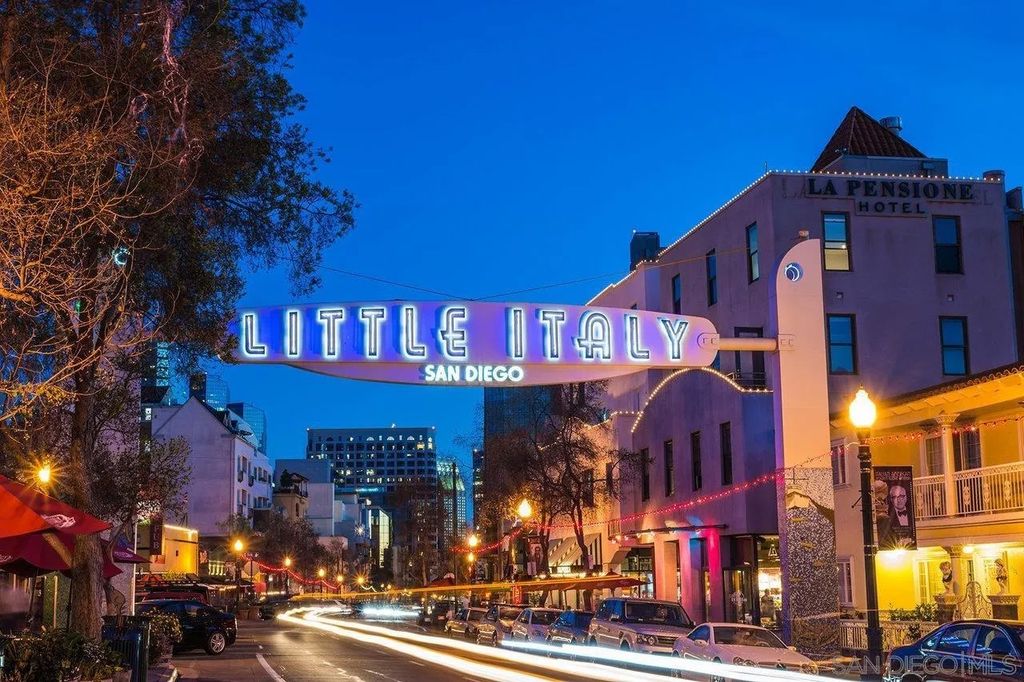 Move-in ready Little Italy loft with dual terraces & skyline views! Step into urban sophistication in this immaculate, top-floor, loft-style one-bedroom home in the coveted Village Walk community at the heart of Little Italy. This beautifully enriched residence boasts 20-foot soaring ceilings, abundant natural light, and hardwood and tile flooring throughout the main level. The open-concept layout features a chef's kitchen with pantry, spacious dining and living areas, and two private terraces showcasing stunning easterly city and skyline views. Upstairs, the loft bedroom offers a dual-sink full bath, a large custom closet, and elevated views. A fabulous flex space with its own bath on the main level is ideal for a home office, studio, or guest area! Move in and immerse yourself in one of San Diego's most vibrant neighborhoods, surrounded by acclaimed restaurants, cafés, the San Diego Harborfront, Downtown, Balboa Park, and the world-famous Zoo"”all just minutes from your doorstep. Discover effortless living with the perfect blend of style, comfort, and location in this rare Little Italy residence!