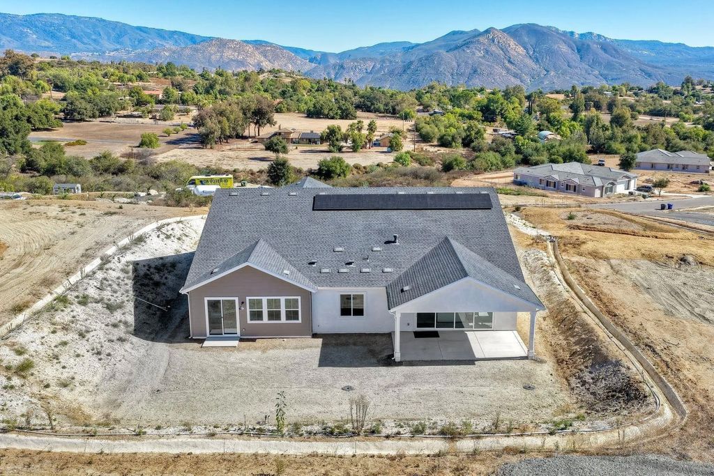 Final Home! New Construction, ask about builder paid interest rate buydown starting at 4.5%, surrounded with panoramic views, set in the foothills of Valley Center on a new cul-de-sac, New Pointe Communities proudly presents this final series of single level estate homes presented on 2 acre plus elevated lots. This home is the plan 3, the largest model, a rare 5 bedroom plus bonus room. The great room features a fireplace and high ceilings, led lighting. Open concept living with a functional gourmet kitchen featuring white shaker cabinets and quartz countertops with generous center island and walk in pantry. An upgraded stainless steel appliance package, propane gas range and a built-in 48 inch GE Monogram Refrigerator/Freezer. Well appointed primary suite and master bath with large walk-in closet, dual vanities and a luxurious freestanding soaking tub, elegant standalone shower. Two secondary bedrooms with a shared full bath and two ensuite bedrooms with private full bathrooms. Functional outdoor entertainment space in the California patio outdoor sitting area accessed through gorgeous oversized sliding doors. Generous indoor laundry room with sink and storage, owned solar system included. Home includes a 1 year fit and finish warranty, No HOA room for RV, Boat and Trailer parking, very usable lots for an elaborate outdoor living space or swimming pool. Near local golf courses, wineries and casinos. Ask us about our current incentives!